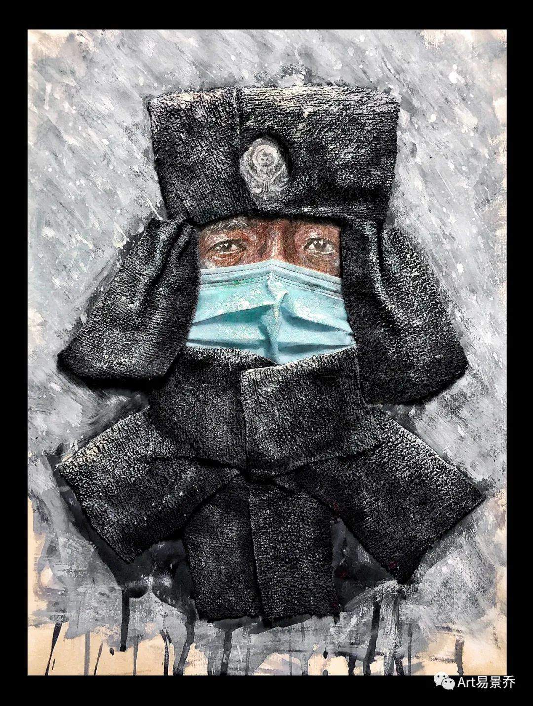 近日,西南大学美术学院本科2018级雕塑专业学生刘昱伽在家中拿起画笔,利用废弃口罩、旧抹布、旧报纸、包装袋等材料,创作出了一幅幅感人的画作。