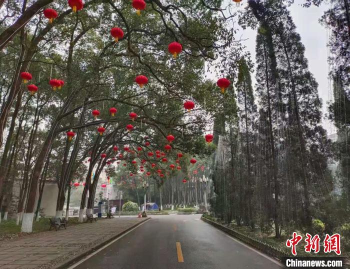 图为挂满灯笼的西南大学校园。受访者提供
