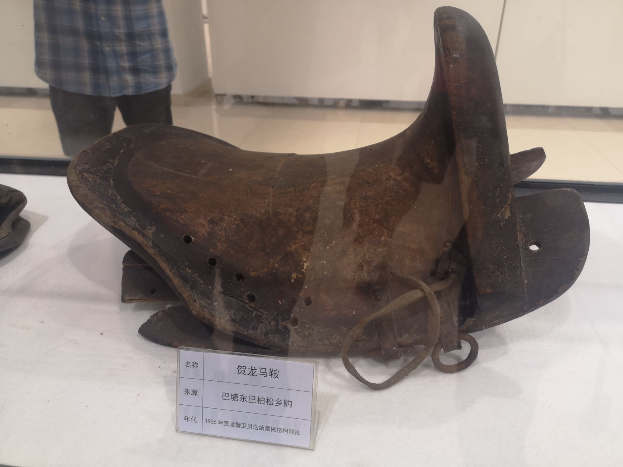 其中最为珍贵的是贺龙元帅长征用过的马鞍。西南大学历史博物馆馆长卞兆明介绍,这件贺龙马鞍来源于四川巴塘县东巴柏松乡,是贺龙长征过草地途中,下令杀掉自己的坐骑后,让警卫员把这幅马鞍送给当地百姓藏民。西南大学档案馆副馆长、作家郑劲松说,贺龙杀马的故事有多次记载,是1936年7月,贺龙率红二方面军过草地时,遇到断粮危机,贺龙决定杀掉自己的枣红战马。