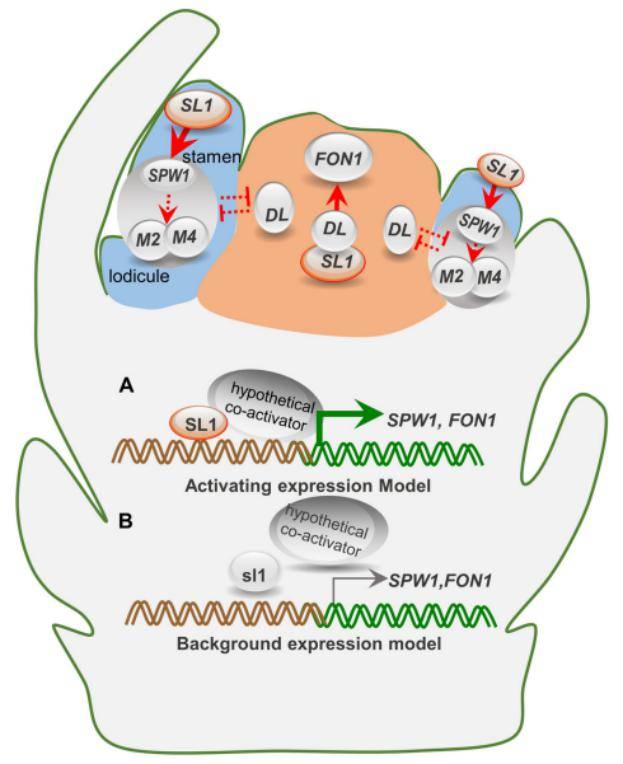 此外,《植物杂志》还在线发表了题为《STAMENLESS1 激活SUPERWOMAN 1 和FLORAL ORGAN NUMBER 1 调控水稻花器官身份特化和花分生组织命运》(STAMENLESS1 activates SUPERWOMAN 1andFLORAL ORGAN NUMBER 1to Control Floral Organ Identities and Meristem Fate in Rice)的研究论文,揭示了STAMENLESS1(SL1)编码一个 C2H2 单锌指结构域蛋白,与花同源异型基因SPW1(B类基因)以及DROOPING LEAF(DL)在特化花器官身份和花分生组织命运方面的相互作用,为完善水稻花/穗发育的分子网络提供了新的途径。西南大学为论文署名单位,博士后庄慧和研究生李宇欢为论文共同第一作者,李云峰教授为论文通讯作者。研究得到国家自然科学基金、重庆市自然科学基金、重庆现代农业产业技术体系和中国博士后科学基金资助项目的支持。