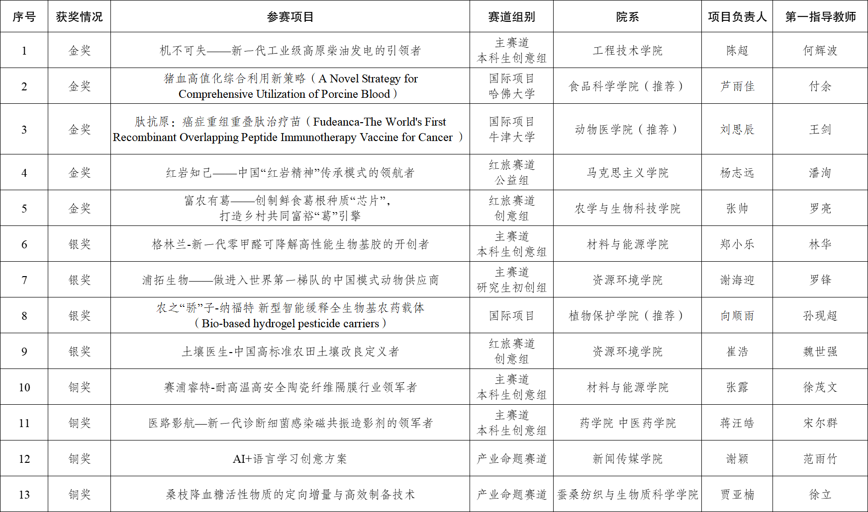 中国国际大学生创新大赛(2023)由教育部等12部门会同天津市人民政府主办,天津大学承办。今年共有来自国内外151个国家和地区、5296所学校的421万个项目、1709万人次报名参赛,1260个优秀项目脱颖而出进入决赛阶段现场比赛,经过激烈角逐,423个项目获得金奖,金奖获奖率万分之一,含金量高。