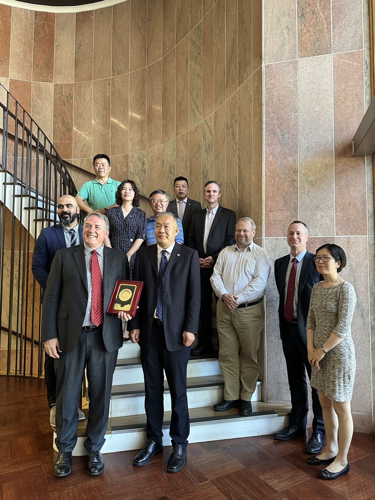 代表团访问的最后一站是詹姆斯库克大学。两校联合举办的动物科学专业中外合作办学项目于2020年首次招生,明年将迎来首届毕业生。两周前,该校校长西蒙·比格斯和副校长马库斯·莱恩来访学校。葛信勇表示,两校学科建设共通点多,希望进一步丰富合作形式、深化合作内涵,提高人才培养质量。副校长马库斯表示,詹姆斯库克大学对双方的合作深感自豪,致力于投入更多资源,力保项目取得成功,希望双方坦诚交流,精诚合作,助推双方国际化程度更上层楼。随后,双方举办联合管理委员会会议,就启动学生短期交流项目、联合培养博士生、联合申报国际实验室以及接受教育部首次评估等事宜交换了意见。期间,葛信勇慰问了来校交流访学的可尧·曾格博士,看望了联合培养的8名学生。