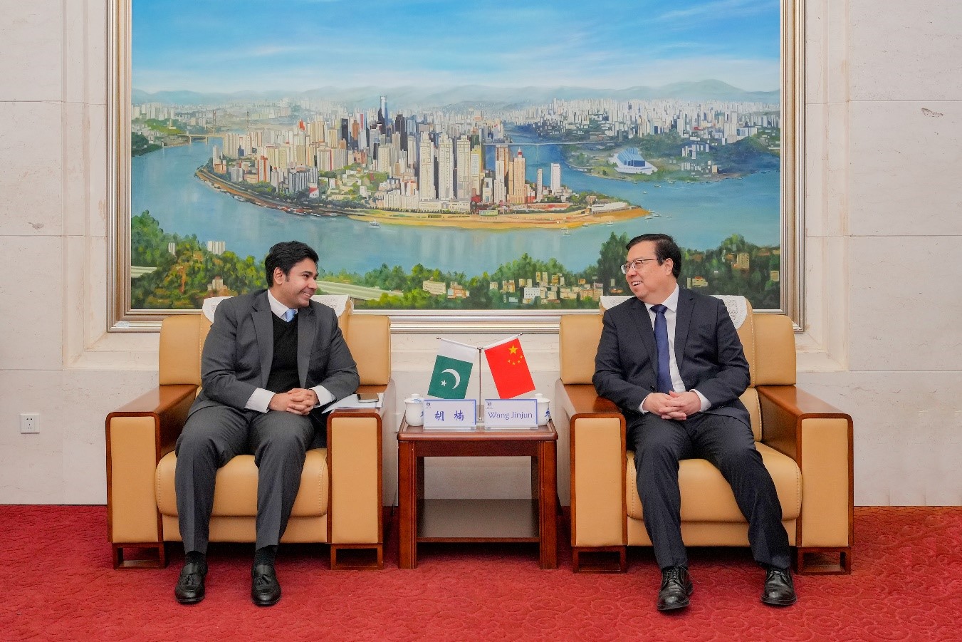 王进军热烈欢迎胡楠一行到访,介绍了学校的基本情况以及与巴基斯坦的合作现状。他介绍到,学校目前有在籍巴基斯坦学生共76人,包含博士、硕士、本科等各个学历层次,另有22名巴基斯坦博士后在校工作,他们都是中巴友谊的使者。期待未来与更多高水平巴基斯坦大学合作,在师生互访、联合培养和科学研究等方面开展合作,促进中巴人文交流和民心相通。