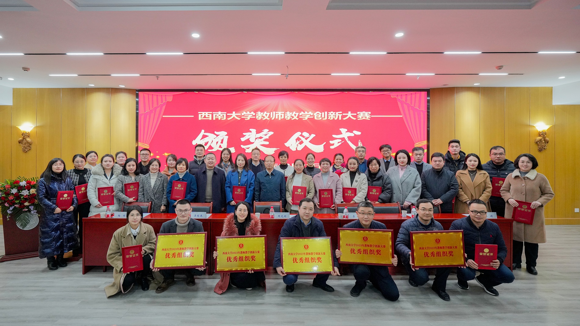 12月28日,学校2023年教师教学创新大赛决赛举行,来自全校31个学院的78位教师参加比赛。学校副校长周光明,教务处、党委教师工作部等单位负责人,各学院分管教学副院长,比赛专家评委、全体参赛教师等人员参加颁奖仪式。