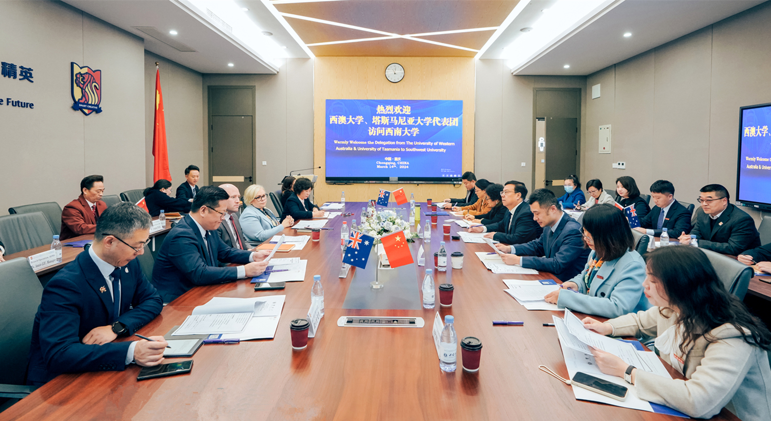 3月14日,澳大利亚西澳大学副校长詹尼弗·豪厄尔(Jennifer Howell)、塔斯马尼亚大学副校长罗伯·威尔逊(Rob Wilson)一行访问学校,西南大学副校长王进军会见客人。国际合作与交流处、研究生院、西塔学院等单位负责人参加座谈。