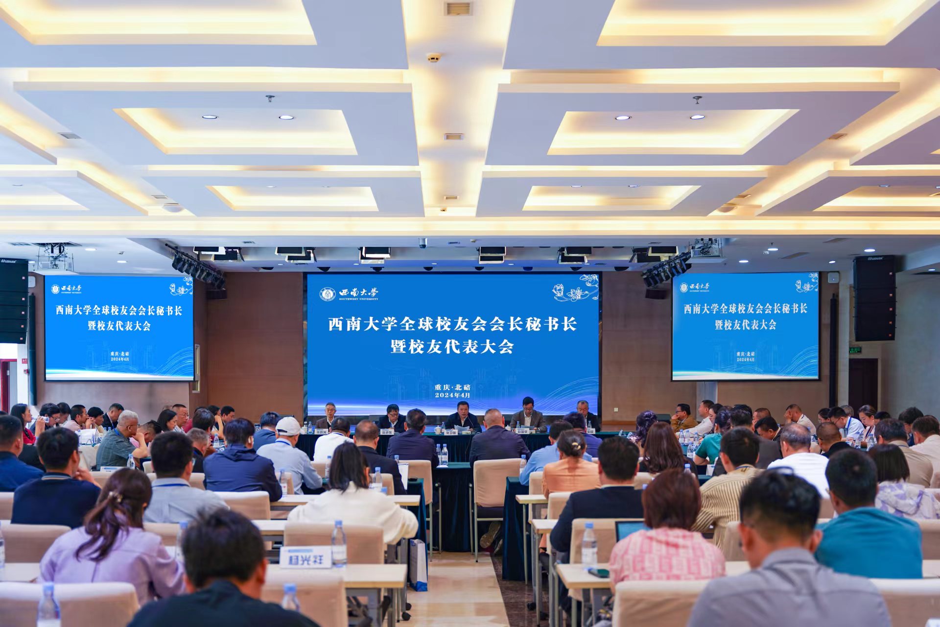 4月13日上午,西南大学全球校友会会长秘书长暨校友代表大会在国际学院报告厅举行。学校校长、校友总会会长张卫国,副校长、校友总会常务副会长赵国华,校友总会副会长赵进东院士、张跃光教授、丁忠民教授出席,海内外校友会会长、秘书长及校友代表,学校相关单位主要负责人参加。会议由赵国华主持。