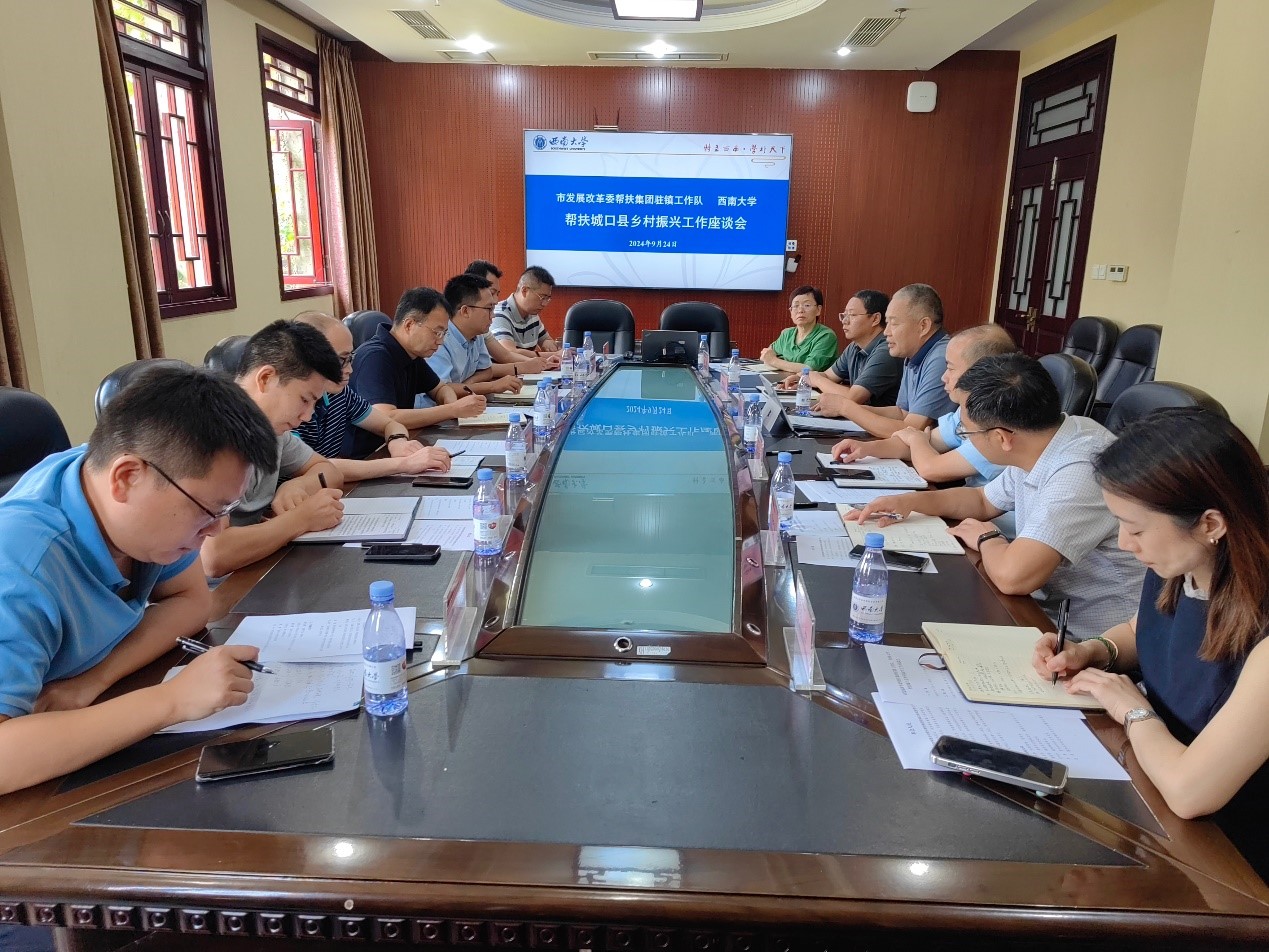 9月24日上午,重庆市发展改革委乡村振兴帮扶集团驻城口县咸宜镇工作队队长、二级巡视员舒畅带队来校调研对接定向帮扶城口县乡村振兴工作。副校长葛信勇出席座谈会,党政办公室、党委组织部、国内合作处等单位负责人参加座谈。