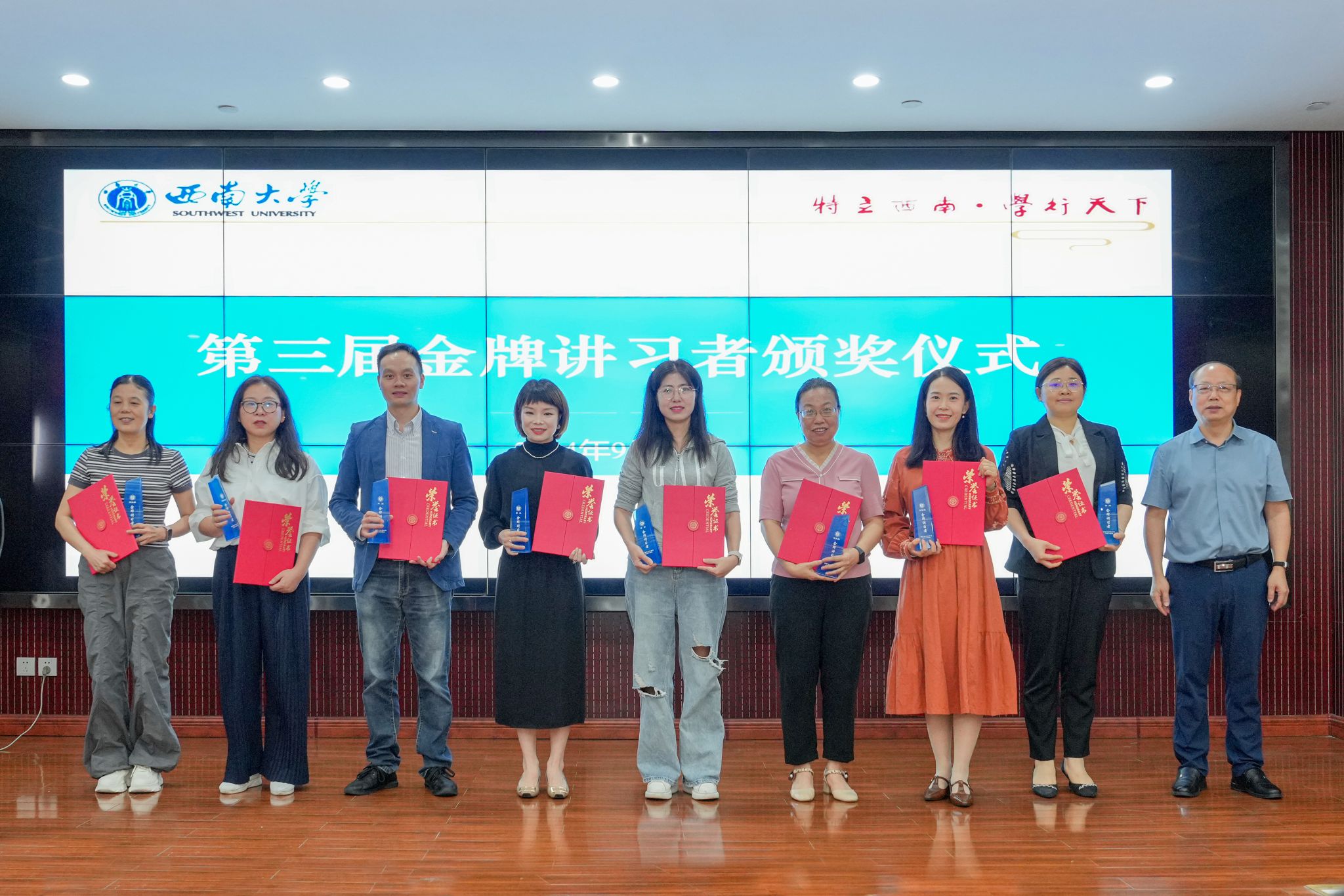 会上,周光明还为获得西南大学第三届“金牌讲习者”的8名获奖者颁奖。