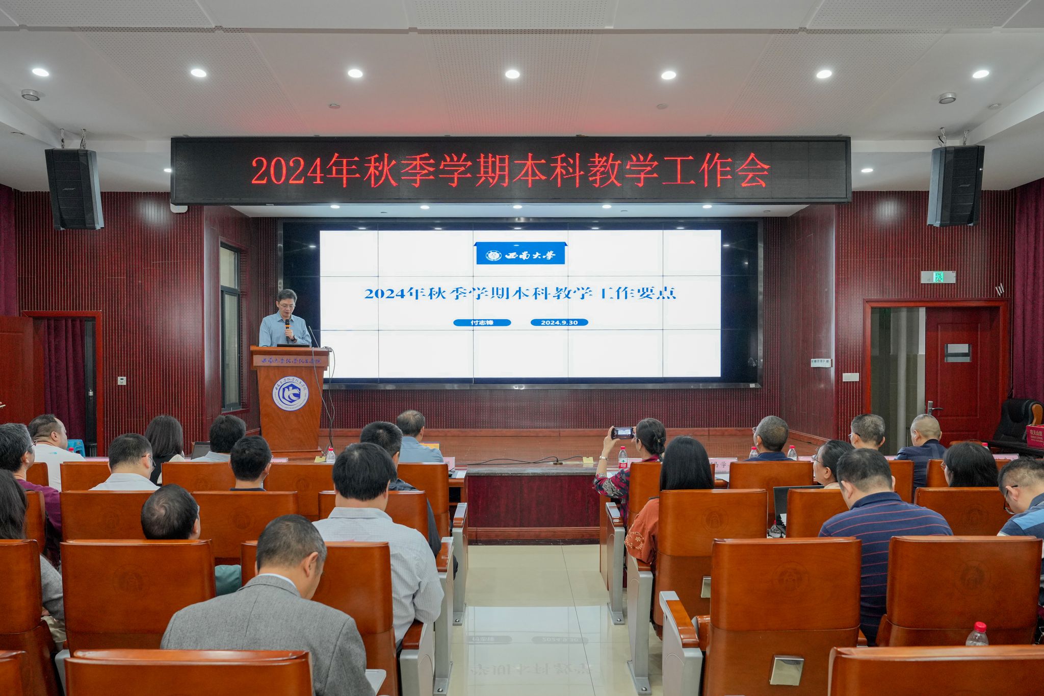 9月30日,学校召开2024年秋季学期本科教学工作会,副校长周光明出席会议并讲话。本科教学督导委员会委员代表,各学院(部)本科教学工作负责人、教学工作办公室主任、教学秘书,教务处全体干部参加会议。会议由教务处副处长吴娟主持。