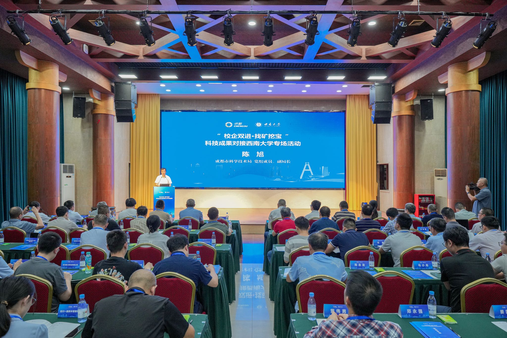 为推动服务成渝地区双城经济圈建设不断走深走实,9月27日,学校与成都市科技局联合举办成都市企业进校园科技成果对接专场活动。学校党委常委、副校长葛信勇,成都市科技局党组成员、副局长陈旭出席活动并分别致辞。来自成都都市圈的14个市、区、县科技部门负责人,40多家科技型企业、投融资机构代表,学校相关部门、学院负责人和专家代表,共100余人参加本次活动。