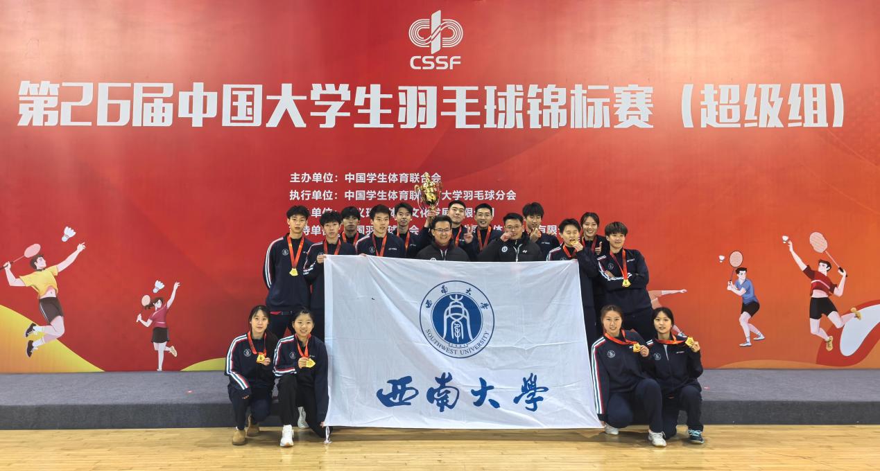 本次赛事中,学校的首枚金牌诞生于混合团体项目,学校运动员历经小组循环赛与淘汰赛的激烈角逐,成功晋级决赛,与华南理工大学一决高下。决赛中,西南大学健儿们展现了精湛的技艺和良好的心理素质。在混合双打(王语嫣/周川又)、男子双打(周川又/曾逸凡)、女子双打(王语嫣/乔诗峻)、男子单打(杨沛翼)及女子单打(戴望)等多个项目中,队员们高水平发挥,将团体项目金牌收入囊中。