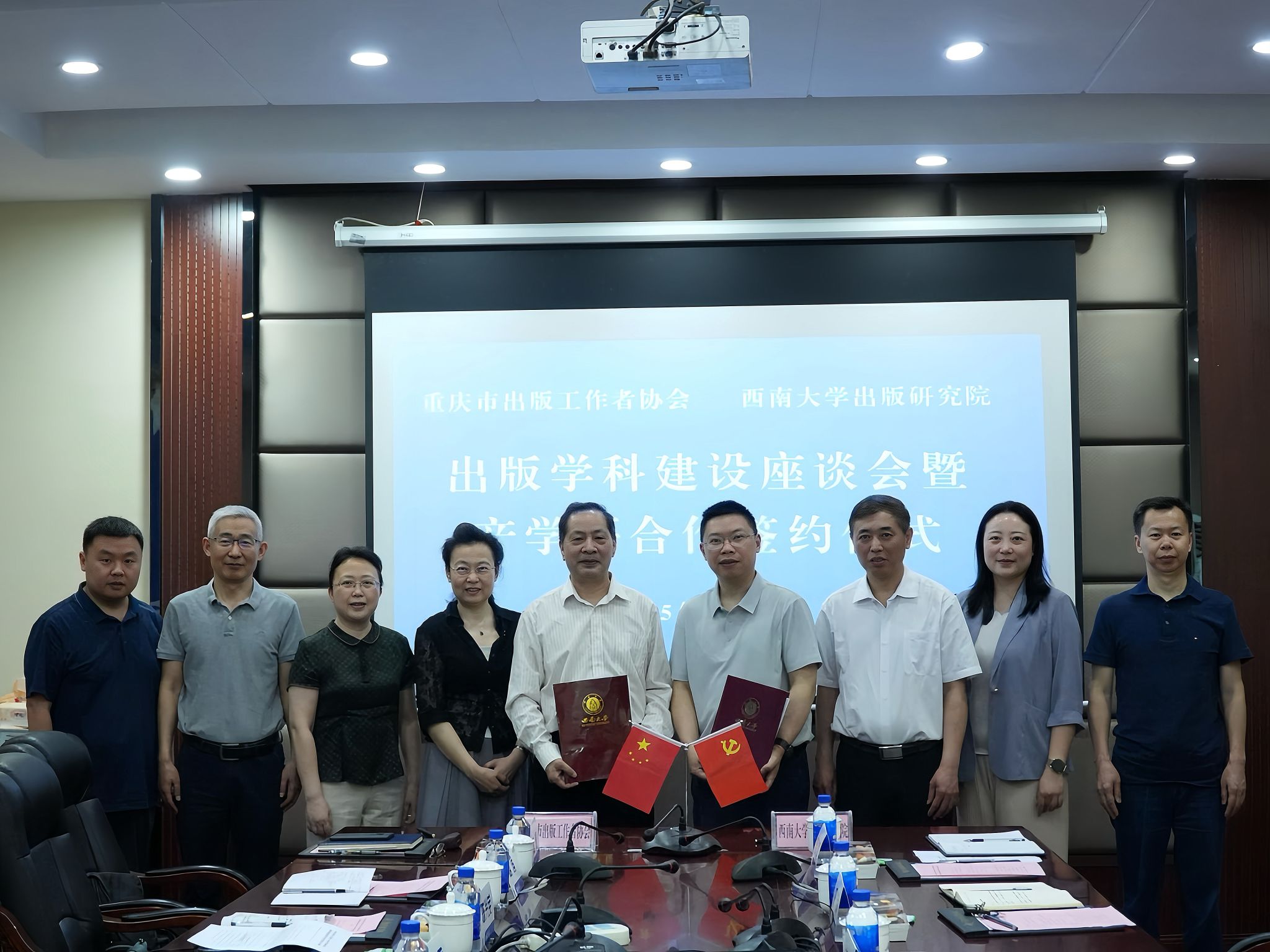 4月21日上午,重庆市出版工作者协会、西南大学出版研究院出版学科建设座谈会暨产学研合作签约仪式在新闻传媒学院举行。重庆市出版工作者协会和西南大学出版研究院相关领导出席会议。