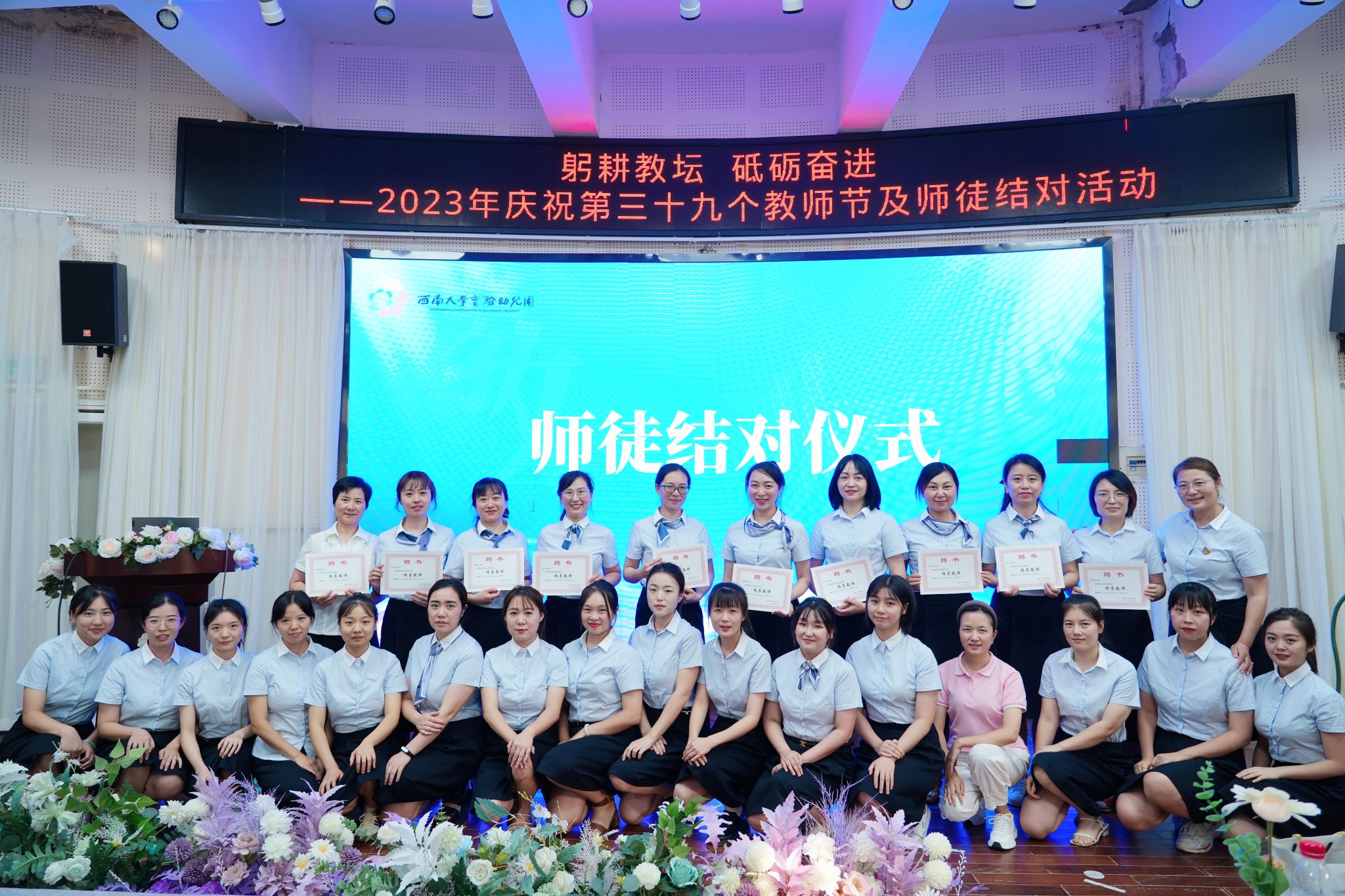 2023年9月,在教师节开展“青蓝工程—师徒结对”活动。