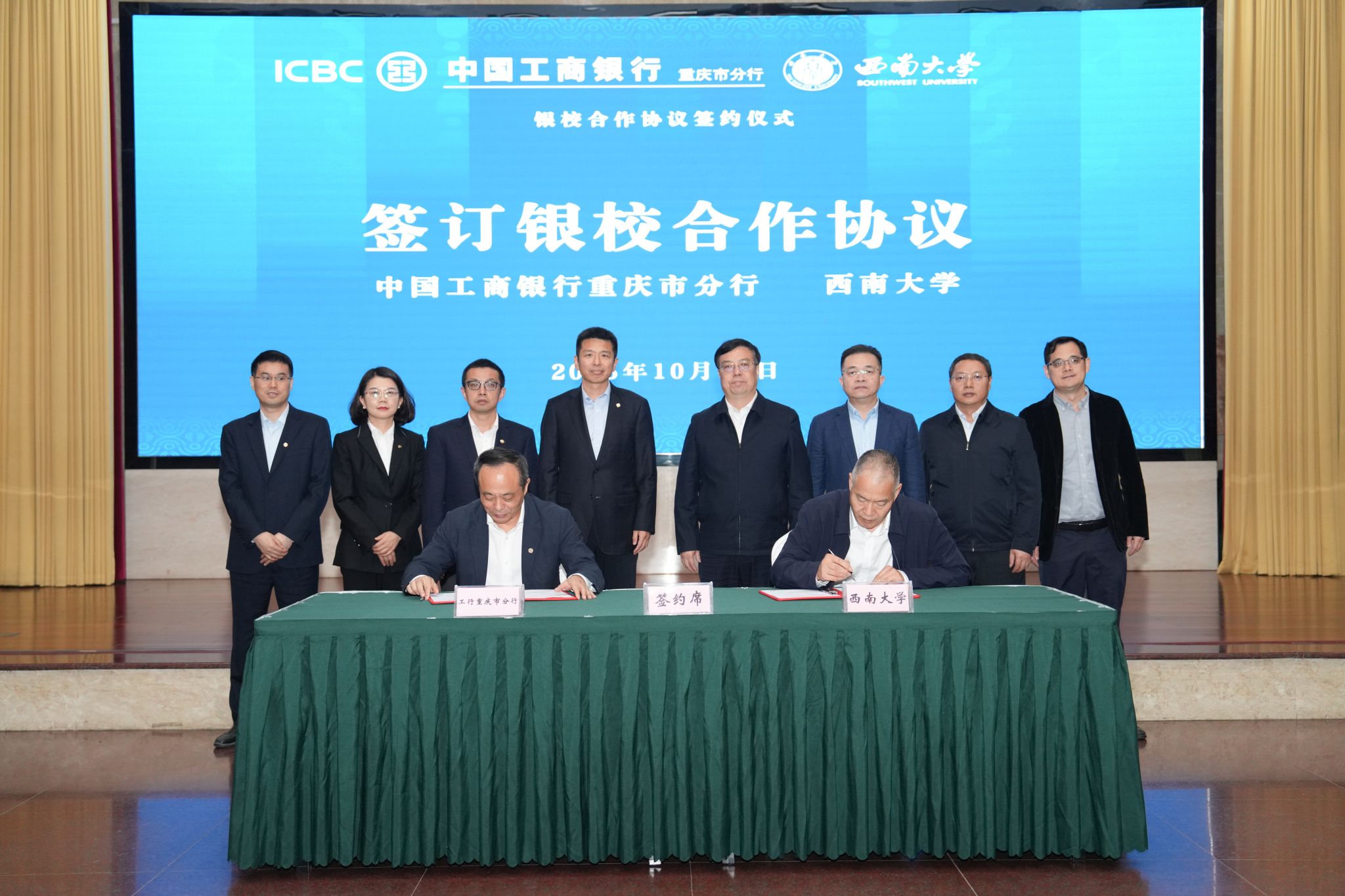 陈明对学校的信任与认可致以谢意。他表示,工商银行始终坚守金融报国初心,积极服务国家战略,支持教育发展与科技创新,未来将为学校量身定制综合金融服务方案,在校园建设、师生服务等方面提供全方位、多层次的金融支持;同时,期待借助学校科研力量,共同探索金融服务乡村振兴、支持现代农业发展的新路径,为重庆高质量发展和农业强国建设贡献合力。