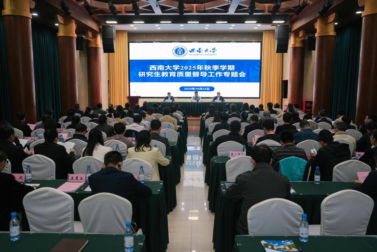 10月22日下午,西南大学在东方红会议厅召开2025年秋季学期研究生教育质量督导工作专题会议。副校长邱江出席会议,研究生院副院长李云伍主持会议。