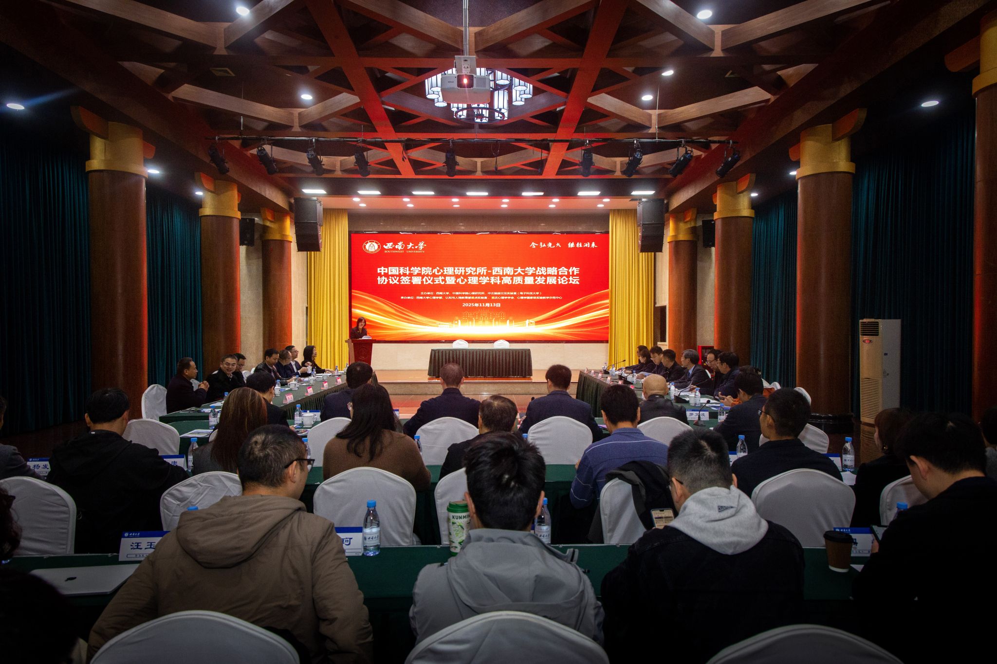 11月13日,“中国科学院心理研究所-西南大学战略合作协议签署仪式暨心理学科高质量发展论坛”在东方红会议厅举行。会议分为签约仪式与高质量发展论坛两大阶段,邀请国内心理学领域顶尖专家学者、政府部门代表齐聚一堂共谋学科发展新篇章。