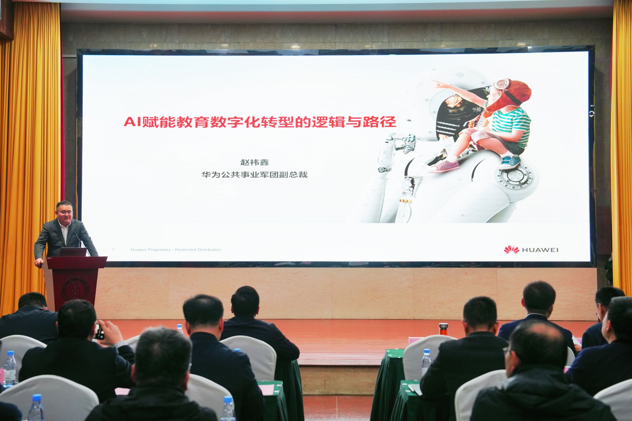 会上,赵祎鑫围绕“AI赋能教育数字化转型的逻辑与路径”主题作专题报告,立足技术前沿介绍了“教育教学、科学研究+AI”的发展趋势,并分享实践思路、案例,期待华为与学校进一步深化产教融合,共建校企合作的良性生态。