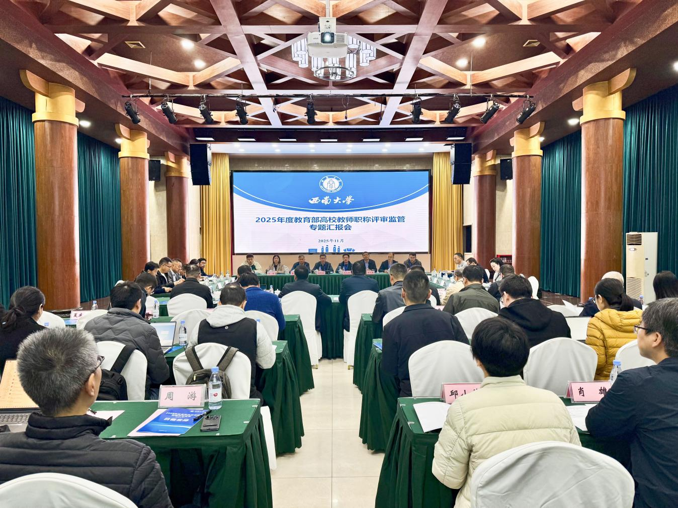 11月17日,教育部高校教师职称评审监管专题汇报会在东方红会议厅召开。专家组全体成员,学校党委副书记武好明、副校长邹芙都出席,相关职能部门负责人、学院负责人代表、中青年教师代表参加。