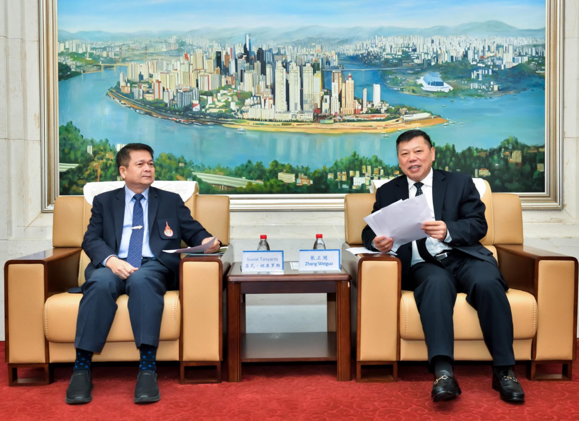 苏瓦·坦亚罗斯对学校的热情接待表示感谢,介绍了泰国皇家理工大学的学科优势和发展规划。苏瓦校长表示,泰国皇家理工大学高度重视与西南大学的合作,期待双方进一步加强各领域合作探索,共同推动中泰教育交流迈向新高度,同时期待明年参加学校120周年校庆盛会,见证学校发展重要时刻。