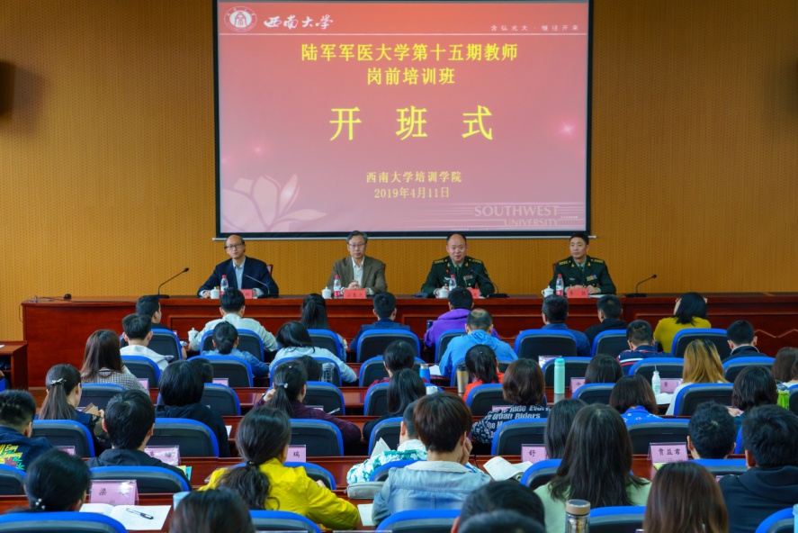 4月11日上午,陆军军医大学第15期教师岗前培训在学校开班,陆军军医大学副校长李云波、职业教育中心主任李懿大校、西南大学党委副书记安春元出席开班式。