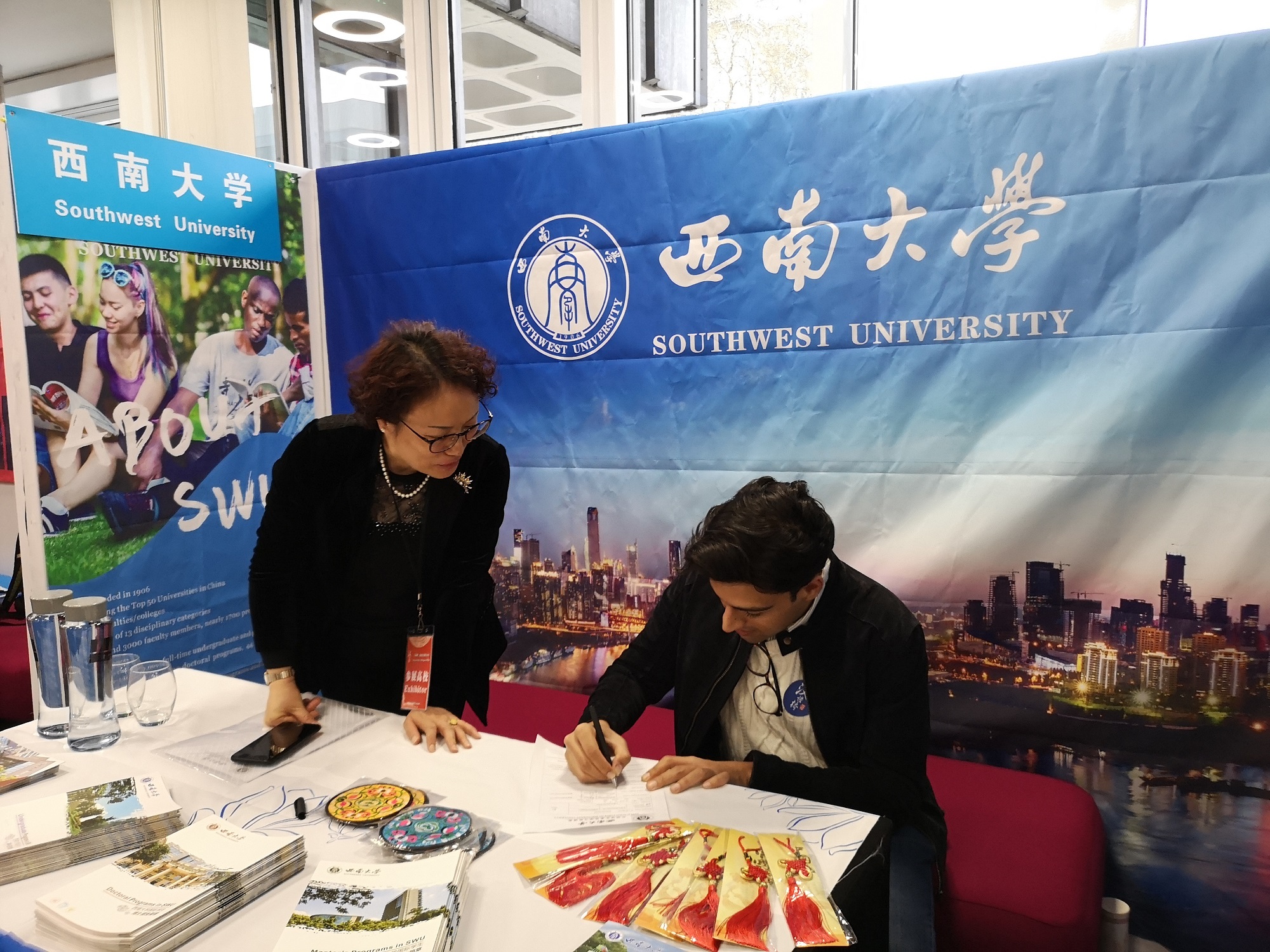 学校代表向前来咨询的英国学生和家长介绍了学校的概况、优势专业、全英文授课专业及各类奖学金的情况等,耐心解答了英国学生及家长的提问,给有意向的学生分发了宣传资料,请学生现场填写了《西南大学来华留学申请表》,并给他们赠送了精美的纪念品。本次英国首届HSK中国留学展吸引了近3000人到现场观摩咨询,为学生搭建起了留学中国、了解中国的桥梁,得到了新华社等多家媒体的关注。