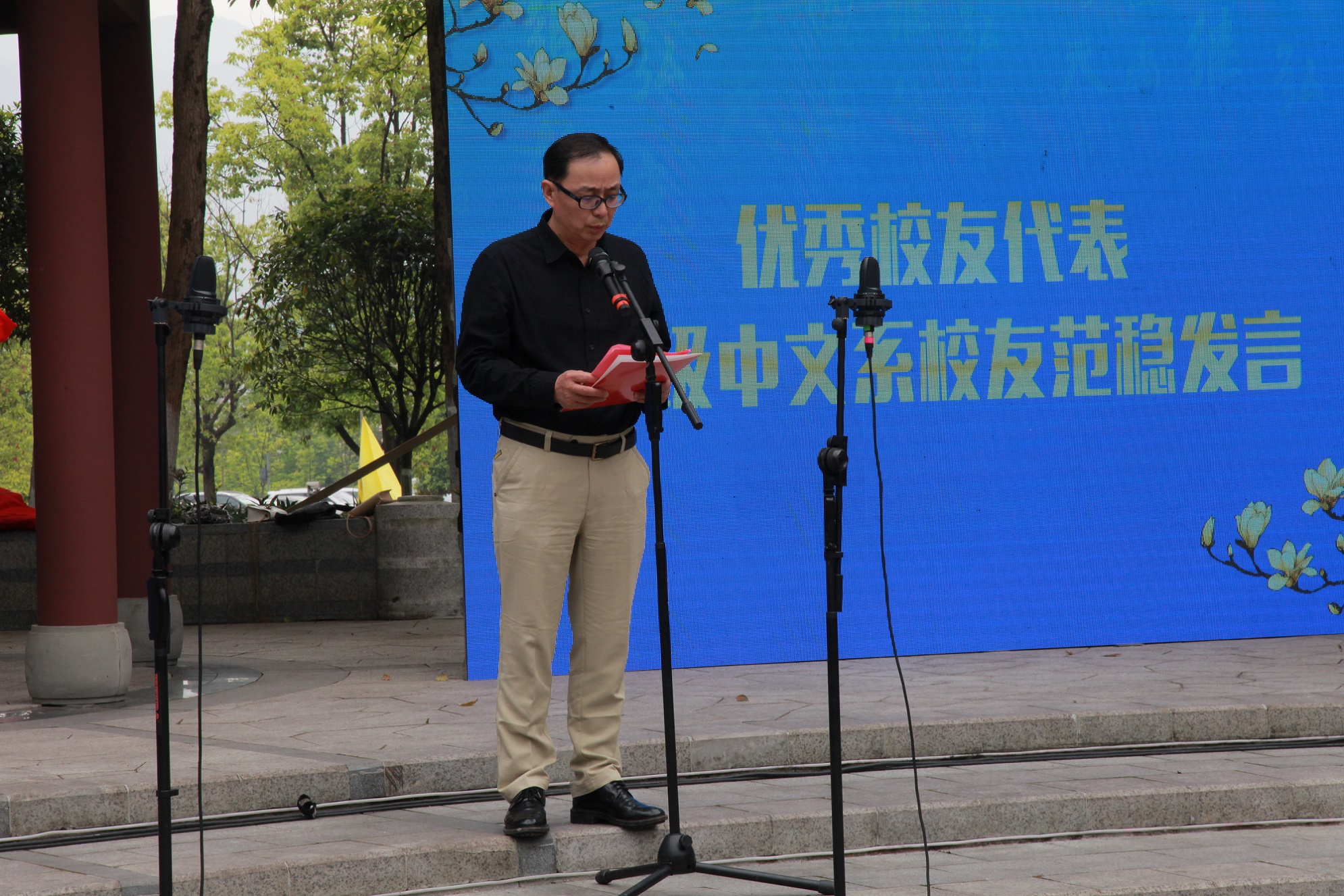 “38年前,当我跨进母校的大门时,我还只在弱冠之年,为学之道,读书之法,均孤陋寡闻、懵懂少知。然‘呱呱之子,各识其亲;谗谗之学,各习其师’,尽管阔别38年,但此刻,坐在这里,当年课堂上那些精神矍铄却风格各异,深深吸引、孜孜灌溉着我们青春心灵的老师们,他们的音容笑貌就在眼前。”范稳回忆自己过去在母校的种种经历,感触颇多,表达了对母校的深深怀念与感恩,向母校和在场的校友们交出了一份自己的人生答卷。他提到,我们是母校的游子,就像我们是母亲的子女一样。今天我们回到母校,既有怀旧的感叹,也为母校的发展壮大而深感自豪和骄傲。西南大学塑造了一代又一代莘莘学子的地理坐标和人文坐标,前者界定了我们的生存家园,后者构建出我们的精神内涵。我们在西南,我们在中国,我们也在世界。范稳的一番对母校的肺腑之言,获得了在场校友们的共鸣,现场掌声雷动。