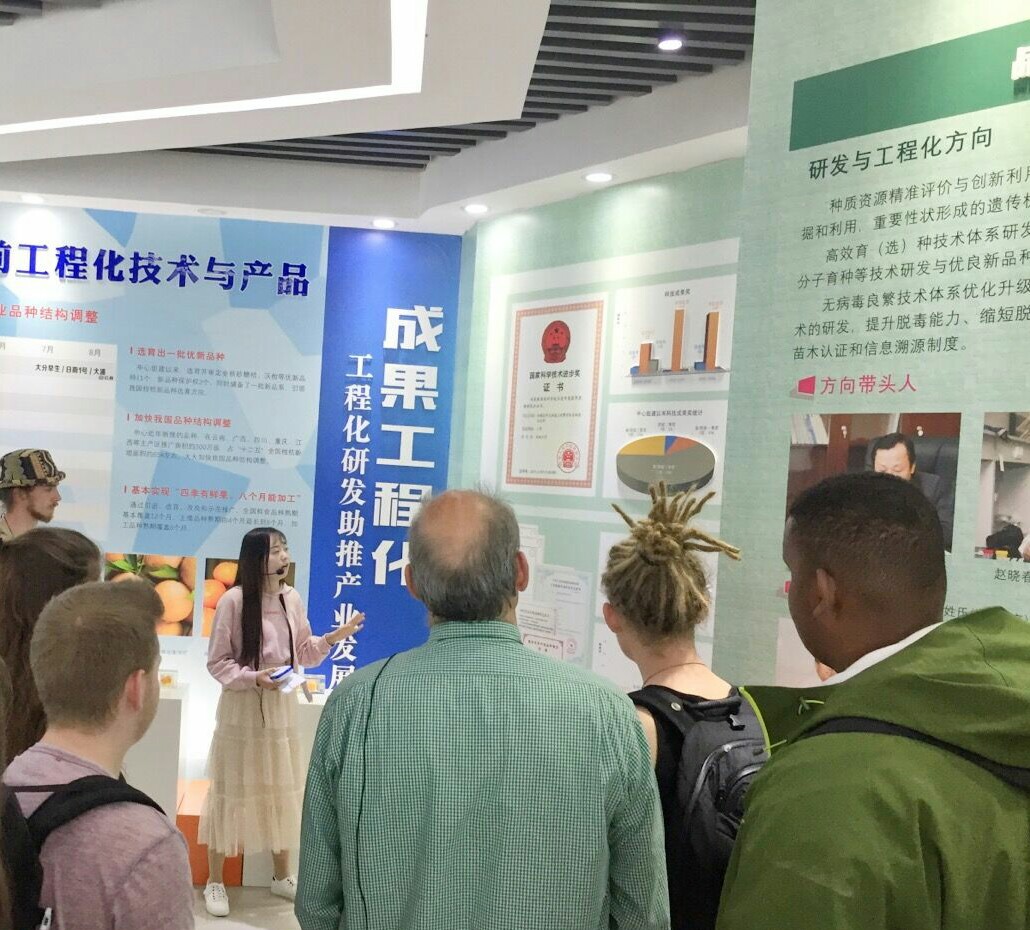 在柑桔品种标本馆,张庆雯、龙俊宏同学为比利时师生讲解了本馆陈列的284个柑桔品种,介绍了柑桔属芸香科的橙、桔、柚和柠檬等种类,并详细讲解了各类柑橘的特征以及它们的食用价值;在柑桔病虫标本馆,邱远健同学为大家讲解了该馆搜齐的各类柑橘病害昆虫,为学生们提供了一个了解昆虫病害更好的平台,比利时学生们对此表示出了浓厚兴趣。各环节讲解完之后,比利时师生都报以热烈的掌声,对柑桔研究所研究生讲解团的工作表示了肯定。