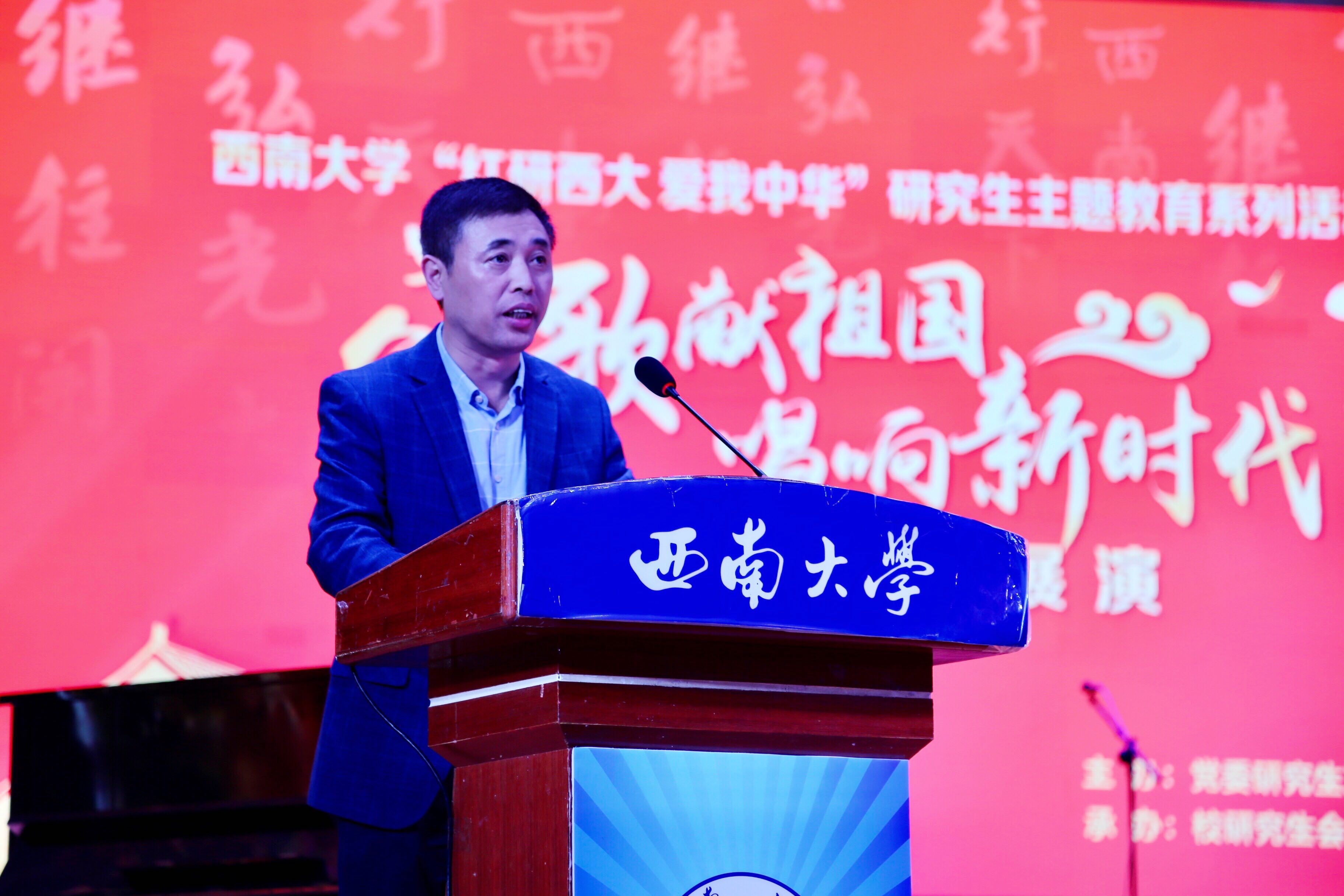 为传承五四精神,讴歌新中国成立70年来走过的辉煌历程和取得的伟大成就。5月15日晚,由党委研究生工作部/研究生院主办,校研究生会承办的西南大学“颂歌献祖国 唱响新时代”研究生合唱展演在光大礼堂举办。学校党委副书记潘洵,党委宣传部/网络工作部、党委研究生工作部/研究生院及各参演单位党政负责同志出席活动,活动邀请到5位重庆市合唱领域专家担任评委。