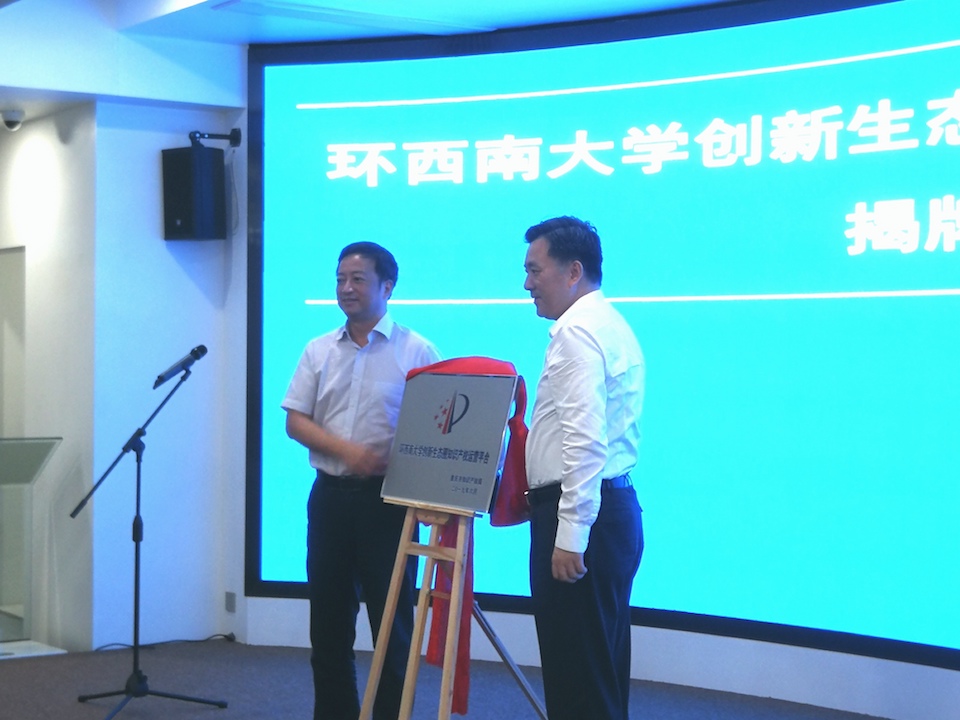 周旭书记和李雷霆局长共同为环西南大学创新生态圈知识产权运营平台揭牌。