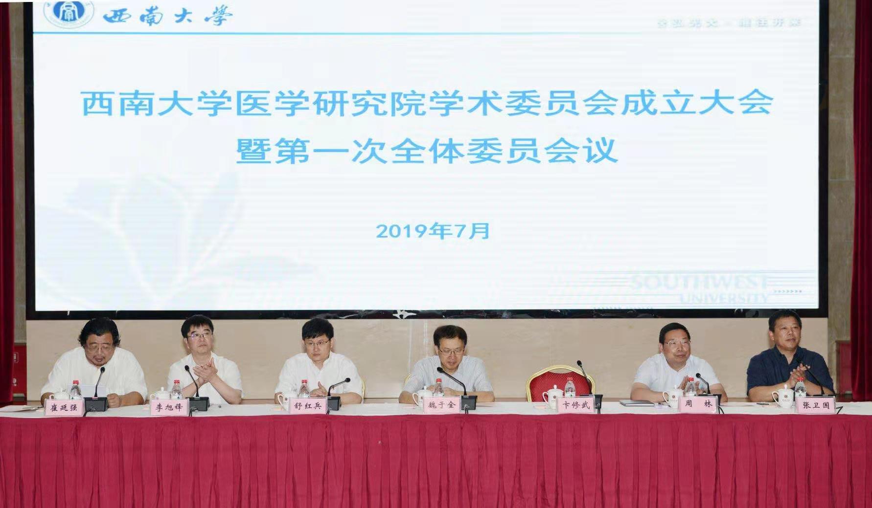 7月15日,学校召开医学研究院学术委员会成立大会暨第一次全体委员会会议。四川大学魏于全院士、武汉大学医学研究院院长舒红兵院士、陆军军医大学卞修武院士等学术委员会委员,重庆市卫健委周林副主任,学校党委书记李旭锋,校长张卫国,副校长崔延强,西南大学附属医院、重庆市第九人民医院,西南大学附属公卫医院、重庆市公共卫生医疗救治中心,西南大学附属心理医院、重庆市精神卫生中心的领导以及学校相关专家和职能部门负责人出席。学术委员会成立大会由崔延强副校长主持。