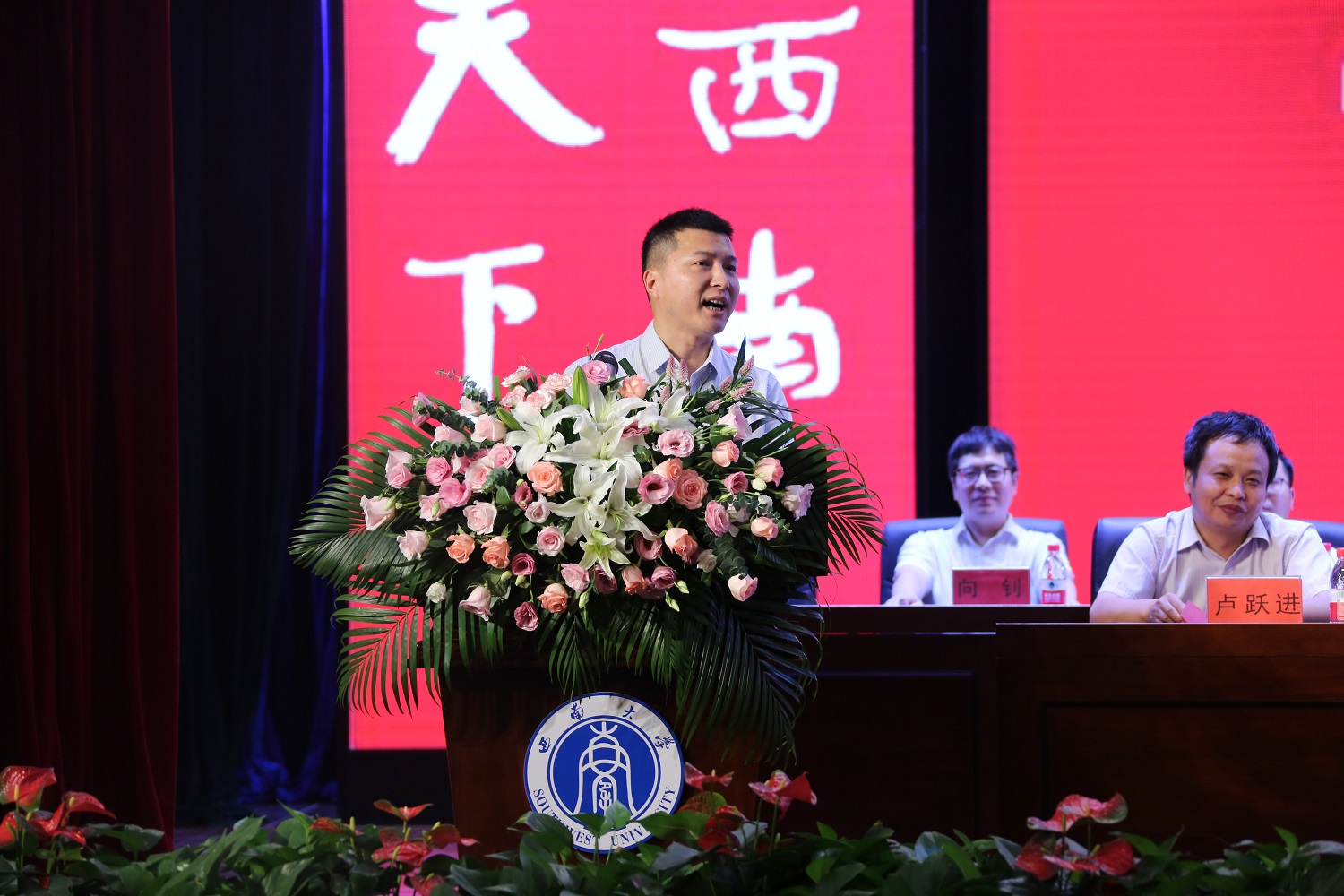 张卫国校长发表讲话,对2019级新生表示热烈欢迎,以“承西大之志,担青年之责”为题寄语新生怀揣志向,立志成才。张校长在讲话中介绍了学校和校区历史沿革、校史文化、大学精神和大家名师、杰出校友,认为荣昌是一个极具有发展潜力的地方,希望同学们在未来四年的大学生活里,立足荣昌,胸怀祖国,把握当下,追梦未来,做孜孜不倦的求知者、志存高远的奋斗者、心系天下的担当者。