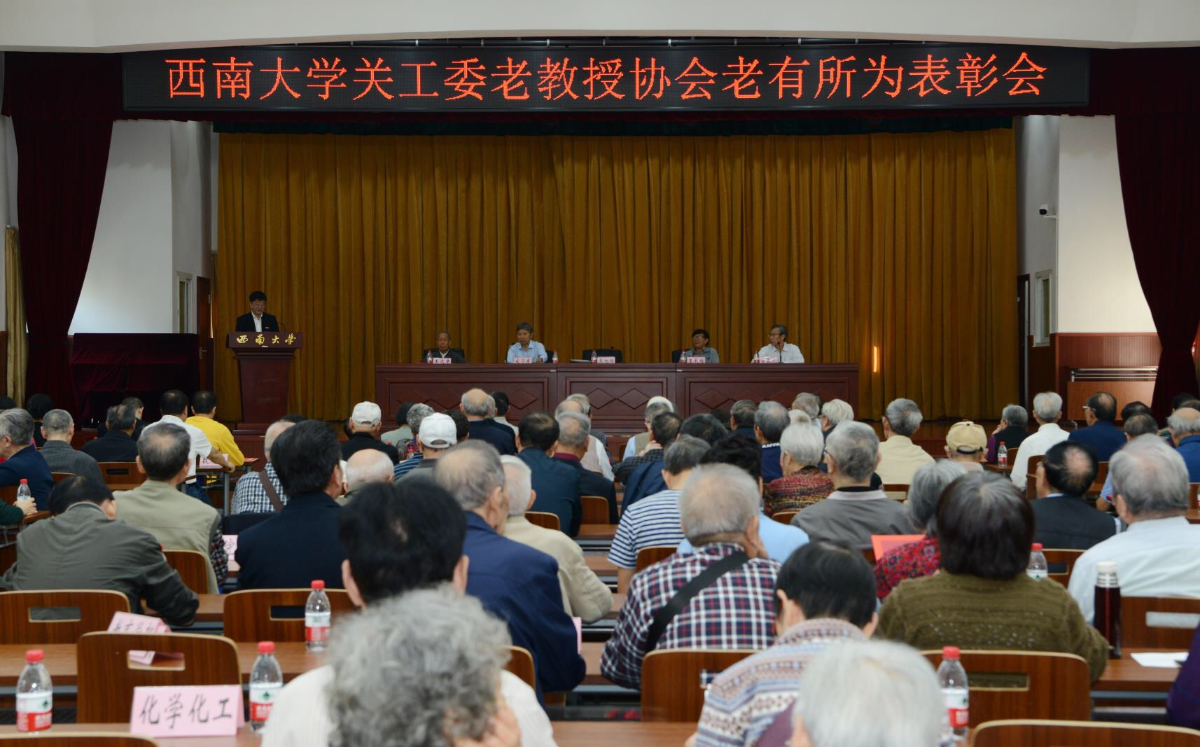 学校党委书记李旭锋,党委副书记安春元,老教授协会会长、原西南师范大学党委书记王长楷,学校关工委常务副主任宋乃庆及74名“老有所为”先进个人、11个先进集体、离退休教职工代表共150余人出席会议。会议由宋乃庆副主任主持,安春元副书记宣布表彰决定。