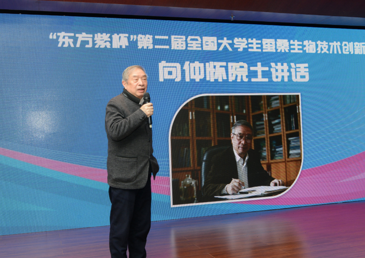 向仲怀院士为荣获特等奖的学生颁奖并讲话,表示此次大赛为增强大学生创新意识、弘扬创新精神、促进学术交流、培养创新人才提供了重要平台。向院士认为,中国的蚕业科学在研究基础、研究力量、研究条件、资源配置上已经取得较大改善,希望同学们珍惜当下,努力奋斗,不断创造蚕业科学更加美好的未来。