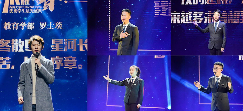 为贯彻学校第三次党代会精神,打造“新学工”,实现新作为,激发全校学生学习先进、争当先进、赶超先进的热情,营造优良学风校风,促进学生全面发展,12月17日晚,学校在光大礼堂举办“荣耀青春”西南大学2018—2019学年优秀学生星光盛典。