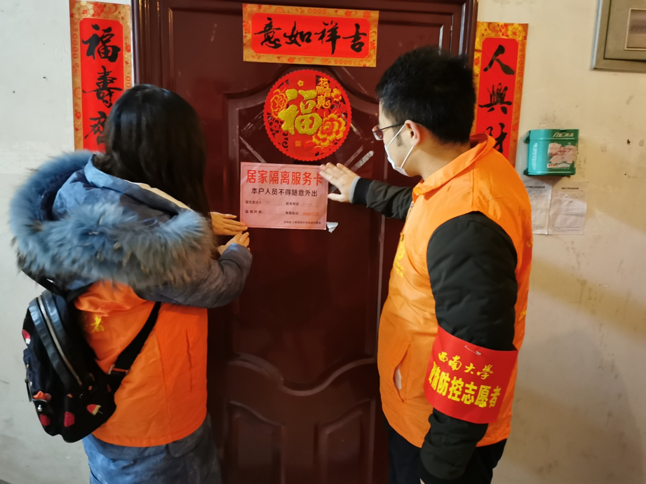 2月13日,学校首批117名教职工党员干部志愿者投身疫情防控一线,其中,学校门岗执勤岗协助保卫处进行门岗值勤、防疫宣传、出入人员管理等工作;防疫消毒岗协助后勤集团对学校防控消毒工作进行科学合理的指导与督促检查,协助做好防疫宣传与引导沟通等工作;南、北社区服务岗协助街道办对学校北社区和南社区所辖片区进行“哨兵岗”执勤、防疫宣传和入户排查等工作;外国留学生服务岗协助对辖区内居住的留学生进行疫情防控教育引导等工作。志愿者工作采用轮班制,每人平均工作2-3天。“上岗”第一天,志愿者们即以饱满的热情和良好的工作状态投身各自的工作岗位,不怕苦、不叫累,关键时刻,勇于冲锋,彰显担当!