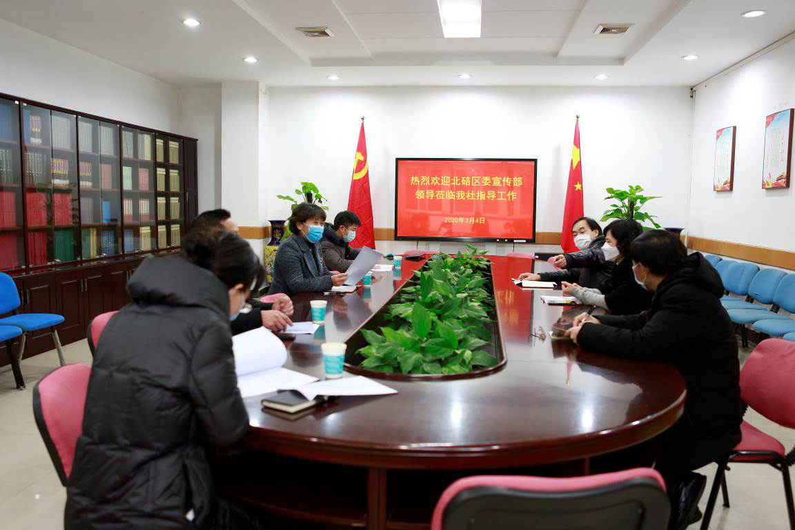 3月4日下午,北碚区区委常委、宣传部部长江绪容,常务副部长张汝国等一行走访学校出版社,就疫情对企业的影响、企业复工复产计划、存在的困难和问题进行调研。学校出版社书记刘春卉、社长米加德、副社长胡小松等参加调研座谈会议。