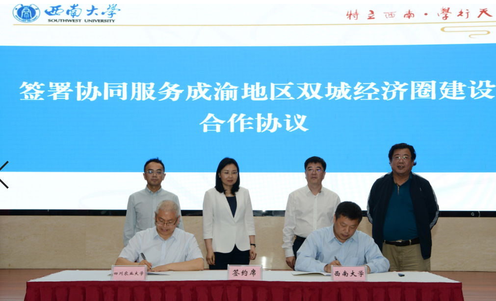 5月15日,西南大学和四川农业大学举行协同服务成渝地区双城经济圈建设合作签约仪式。四川农业大学党委书记庄天慧、校长吴德、副校长李明洲,西南大学党委书记李旭锋、校长张卫国、副校长崔延强、副校长温涛,以及两校相关职能部门和二级教学科研单位负责人参加会议。温涛主持签约仪式。