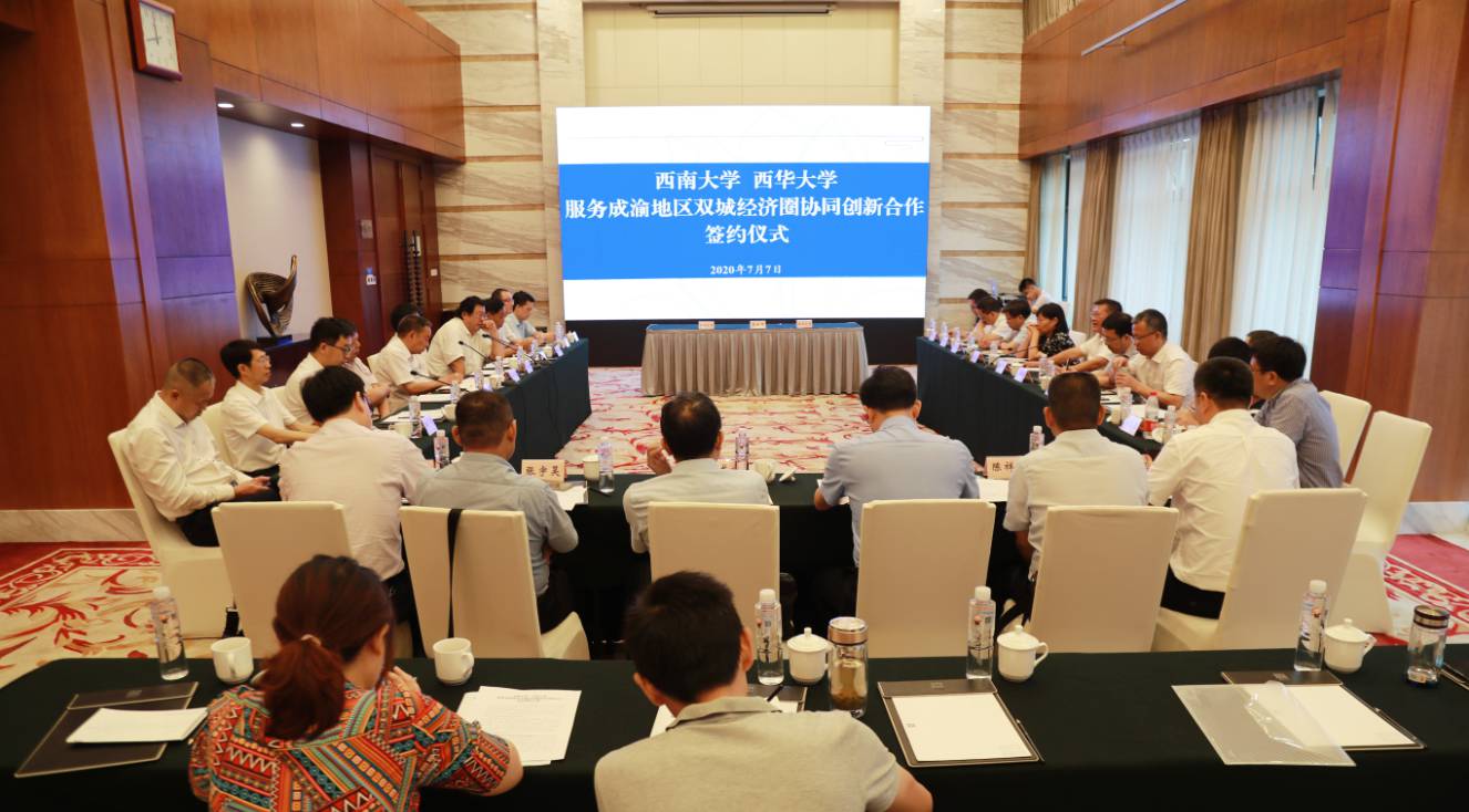 7月7日,西南大学和西华大学服务成渝地区双城经济圈协同创新合作协议签约仪式在重庆渝州宾馆举行。标志着双方践行成渝地区双城经济圈高校联盟使命,合力推进成渝现代高效特色农业带建设,高质量开启深度合作新篇章。