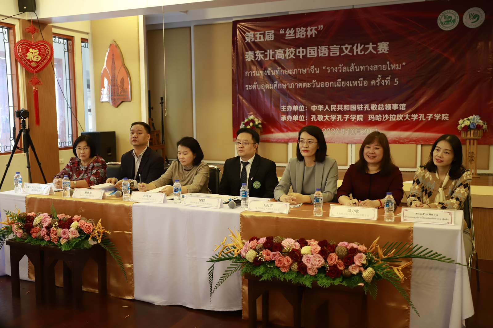 10月20日,学校共建泰国孔敬大学孔子学院携手玛哈沙拉坎大学孔子学院举办第五届“丝路杯”泰东北地区高校中国语言文化大赛。本次比赛采取线上形式进行。中国驻泰王国大使馆一等秘书宋若云,驻孔敬总领事廖俊云,孔敬大学孔子学院和玛哈沙拉坎大学孔子学院代表出席开幕式。来自西南大学、泰国朱拉隆功大学、兰实大学的中文教育专家担任评委。本次比赛共有12所高校代表队参赛,参赛师生共300余人。
