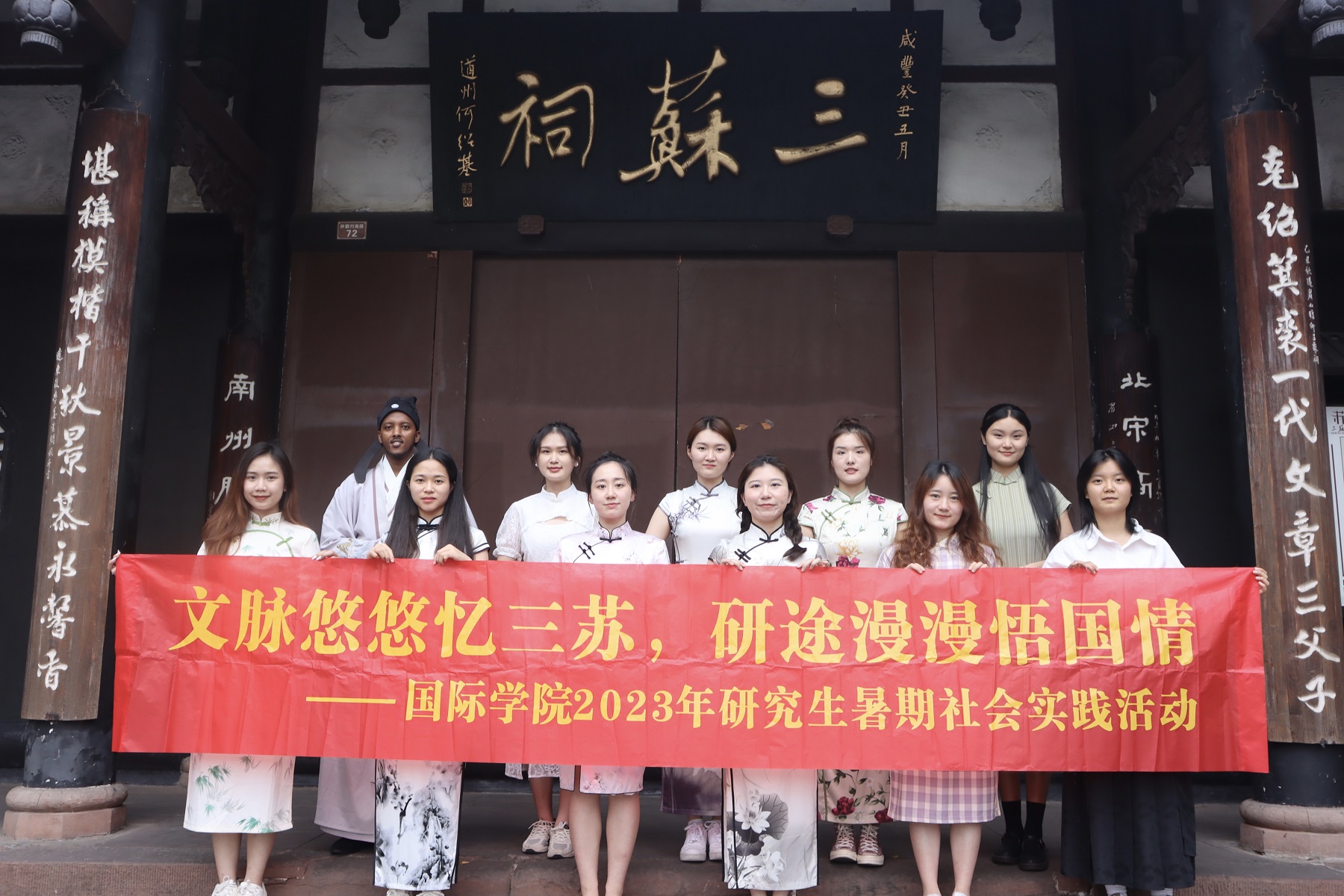 为深学笃行党的二十大精神,响应习近平总书记“立足中国大地,讲好中国故事”的号召,在学校党委研究生工作部的指导下,国际学院组织成立“紫云研学”实践队,实践队一行12人于6月29日赴四川眉山开展主题为“文脉悠悠忆三苏,研途漫漫悟国情”的研究生暑期社会实践活动。