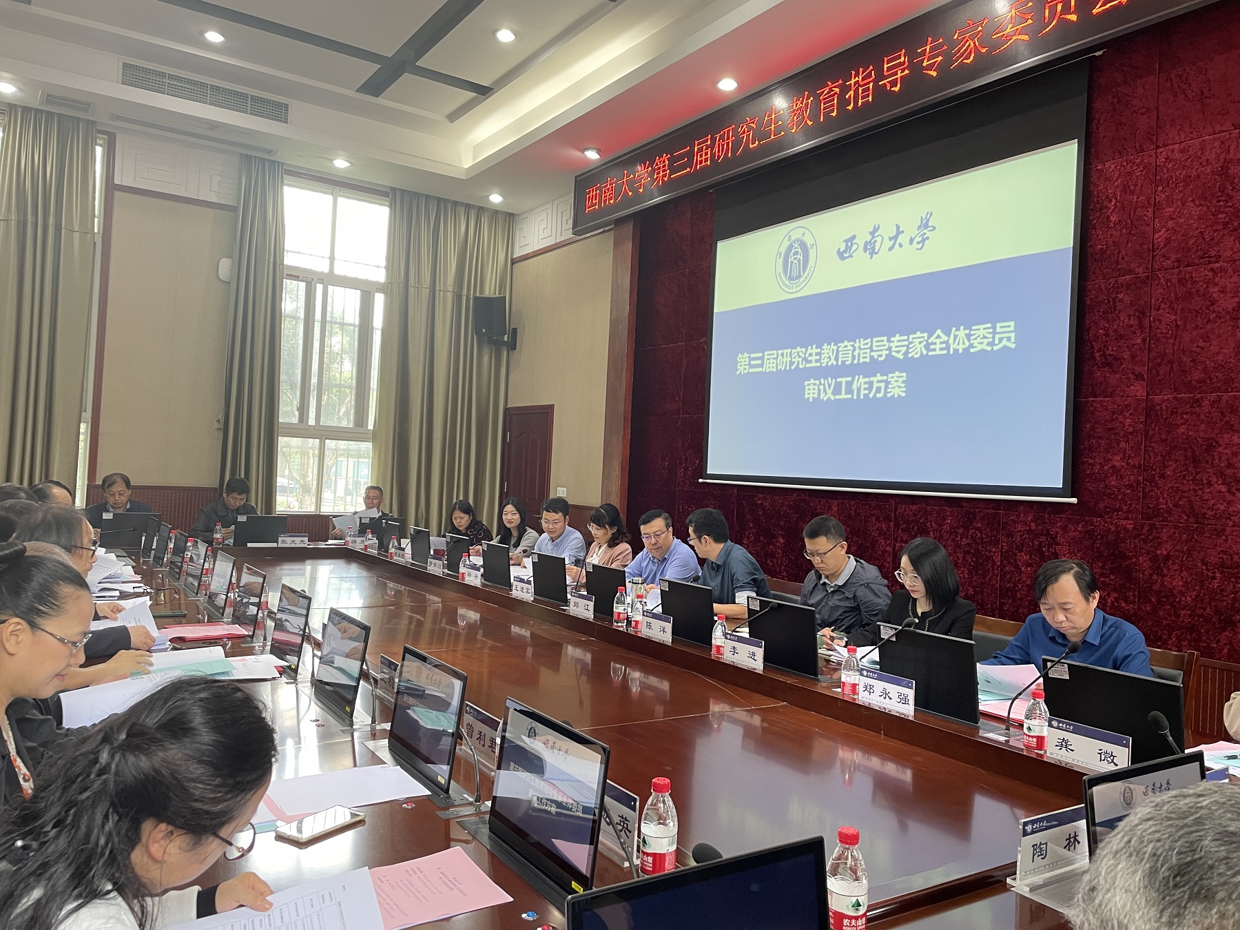为深入贯彻落实习近平总书记关于研究生教育的重要论述,落实学校研究生教育高质量发展行动计划(2021-2025),持续推动研究生教育内涵式高质量发展,10月10日下午,研究生院组织召开西南大学第三届研究生教育指导专家委员会第六次会议。副校长王进军,第三届研究生教育指导专家委员会委员,研究生院 党委研究生工作部领导、相关科室工作人员参会。会议由研究生院有关负责同志主持。