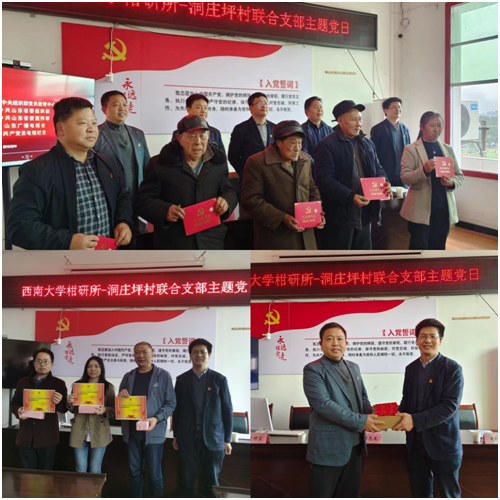 丰都县龙河镇镇长刘阳、龙河镇人大副主席、洞庄坪村党支部书记谭晓东,柑桔研究所党委副书记刘昭暾、副所长丁增富及教工四支部党员等参加上述活动。