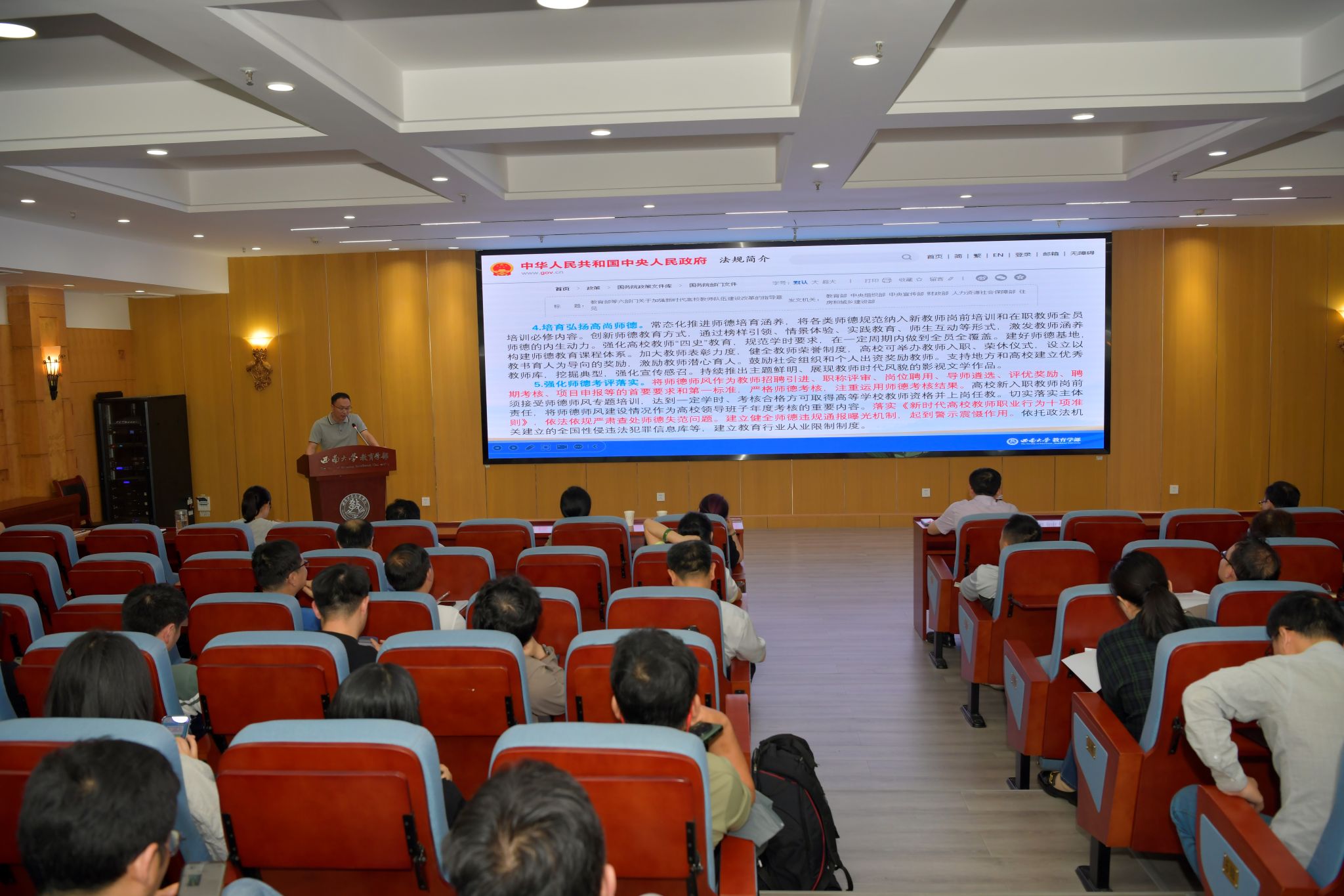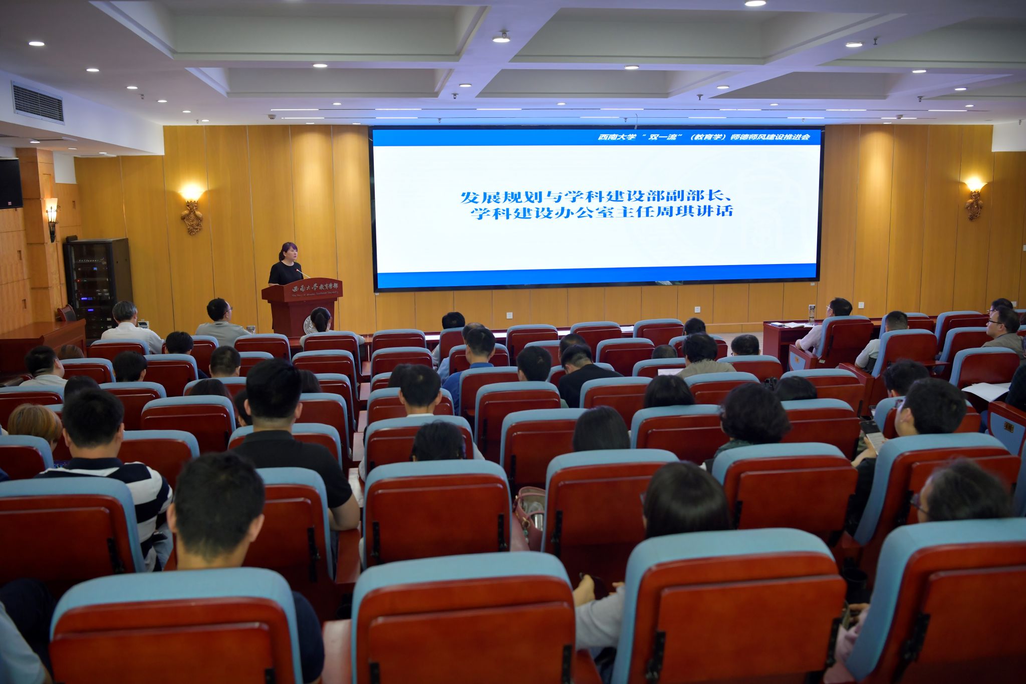 5月10日下午,西南大学“双一流”(教育学)师德师风建设推进会在教育学部802报告厅顺利召开。学校党委教师工作部部长李燕,发展规划与学科建设部副部长、学科建设办公室主任周琪,教育学部全体班子成员和教育学部、西南民族教育与心理研究中心教职工参加会议。会议由学部党委书记周文全主持。