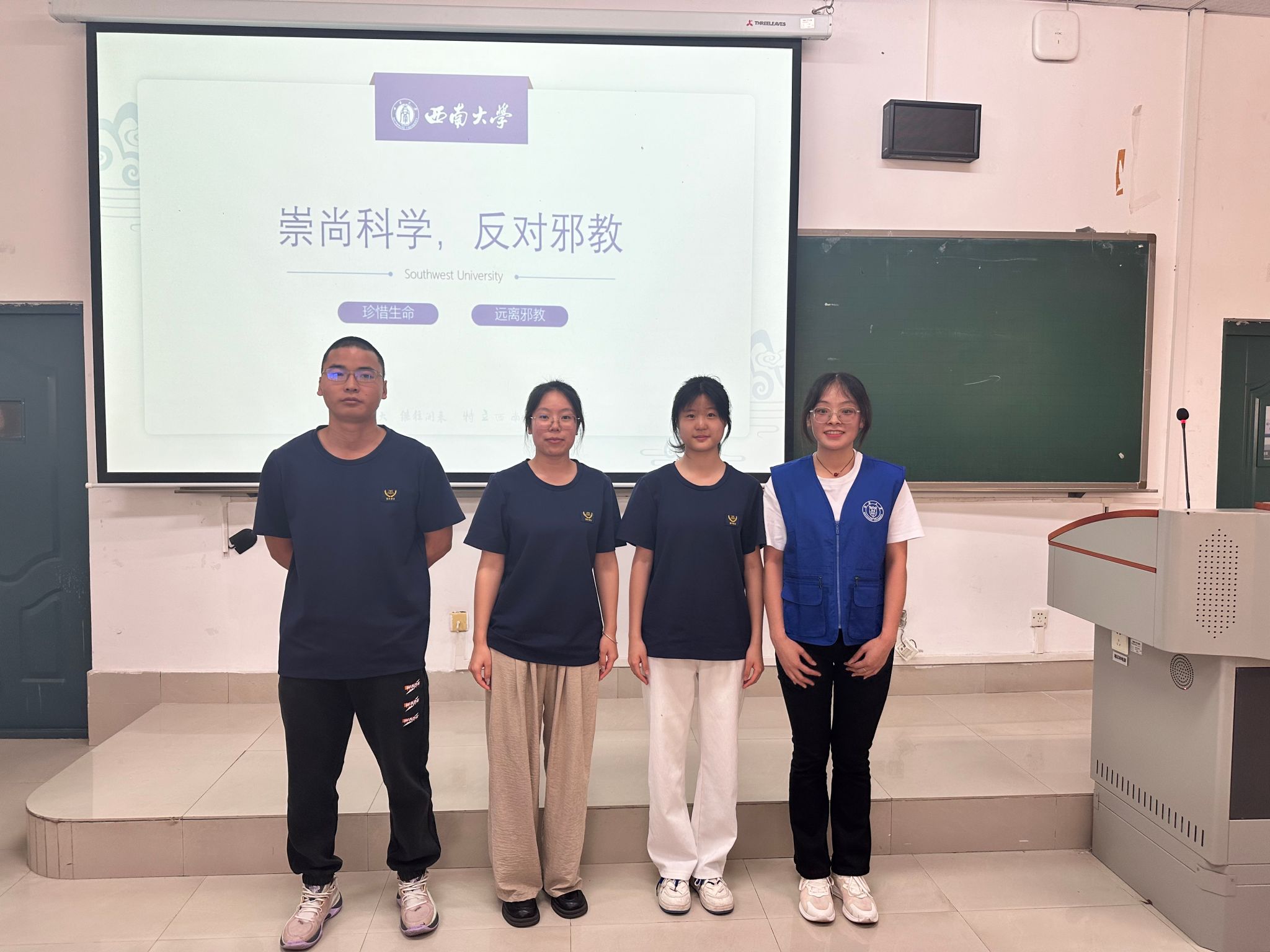 此外,学校玉兰卫士班宣讲团成员还走进学院、班级、寝室等,开展了为期一个月的“崇尚科学 防范邪教”主题宣讲,覆盖多个学院,30余个班级,重点介绍了邪教的本质及危害、邪教骗人的手段和识别方法,并通过真实案例警示大家自觉远离邪教、抵制邪教,筑牢国家安全意识;学校科协围绕平安校园建设,聚焦揭批邪教组织本质及危害、普及防邪反邪知识等,牵头组织开展反邪教原创作品创作、征集活动,师生广泛参与,共征集文字、图片、音视频等六类作品共30余件。