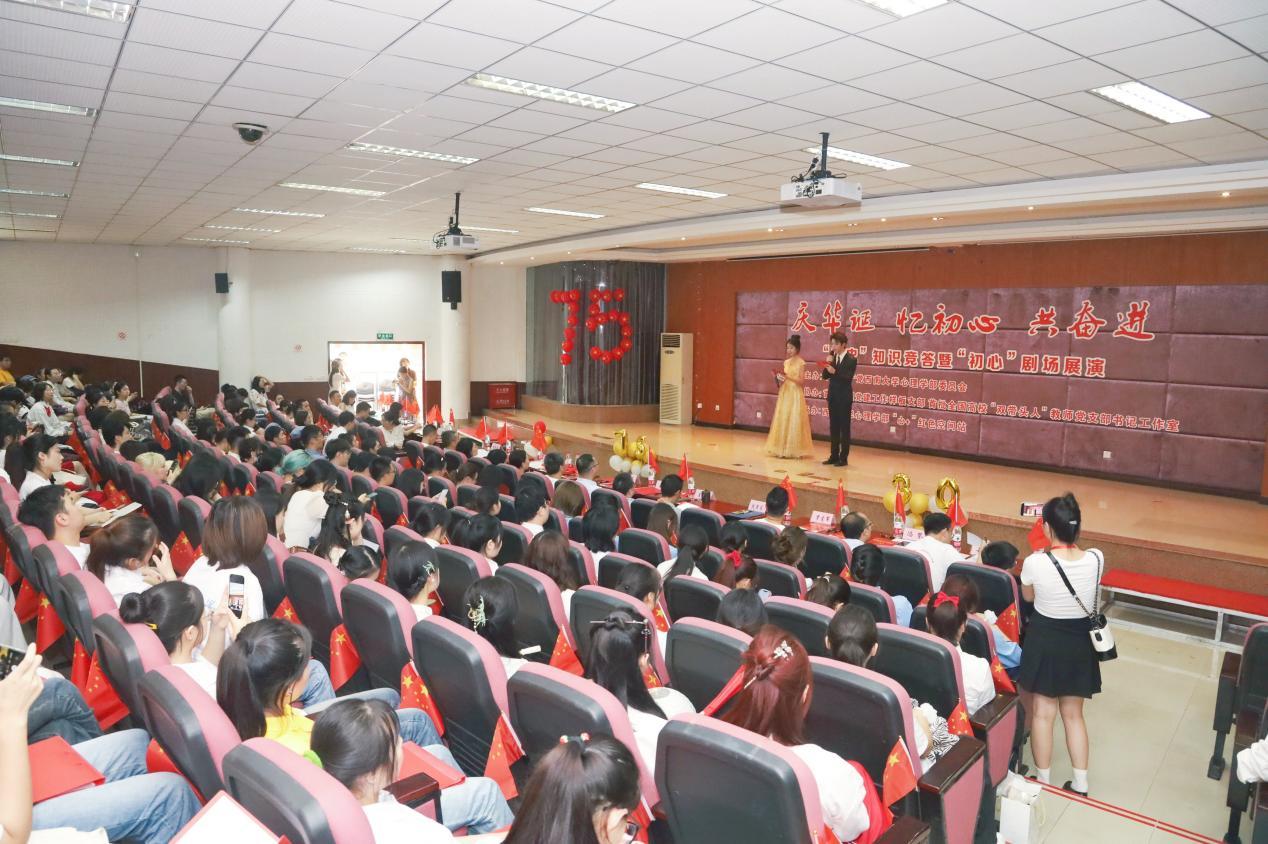 “初心”剧场展演同样精彩纷呈。首批全国党建工作样板支部、首批全国高校“双带头人”教师党支部书记工作室——心理学部教师第一党支部特别出演“圆桌心理剧”《不忘教育初心,传递智慧火种——论如何将教育家精神融入教学、科研和社会服务》,拉开了“初心”剧场赛道的序幕。在之后“群星闪耀”的“初心”剧场里,9支队伍陆续上场,用激昂嘹亮的歌声、灵动优美的舞蹈、声情并茂的朗诵、活灵活现的表演,抒发对革命先驱和创业先辈的崇高敬意,表达对新中国成立75周年、心理学部建系30周年的热烈祝贺。